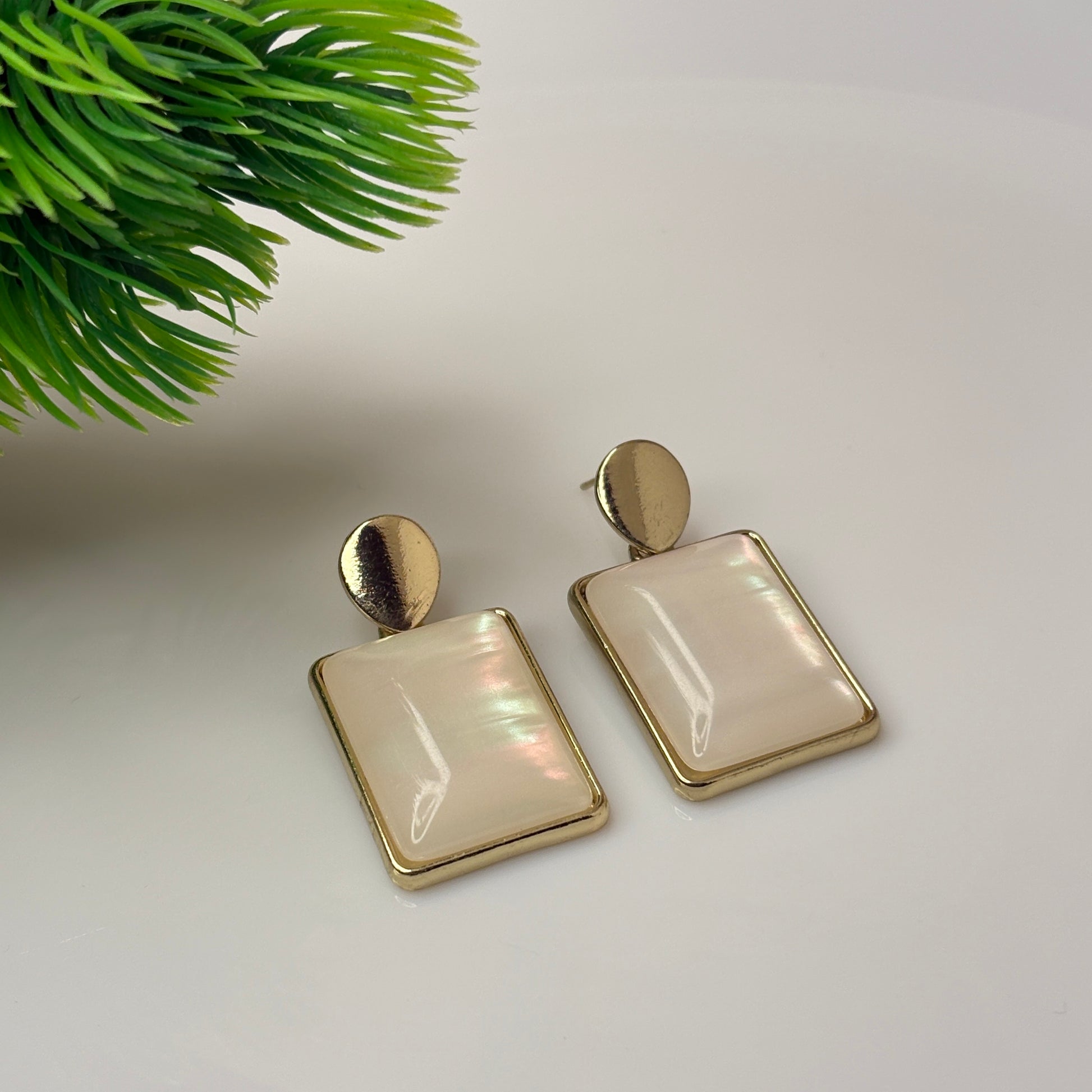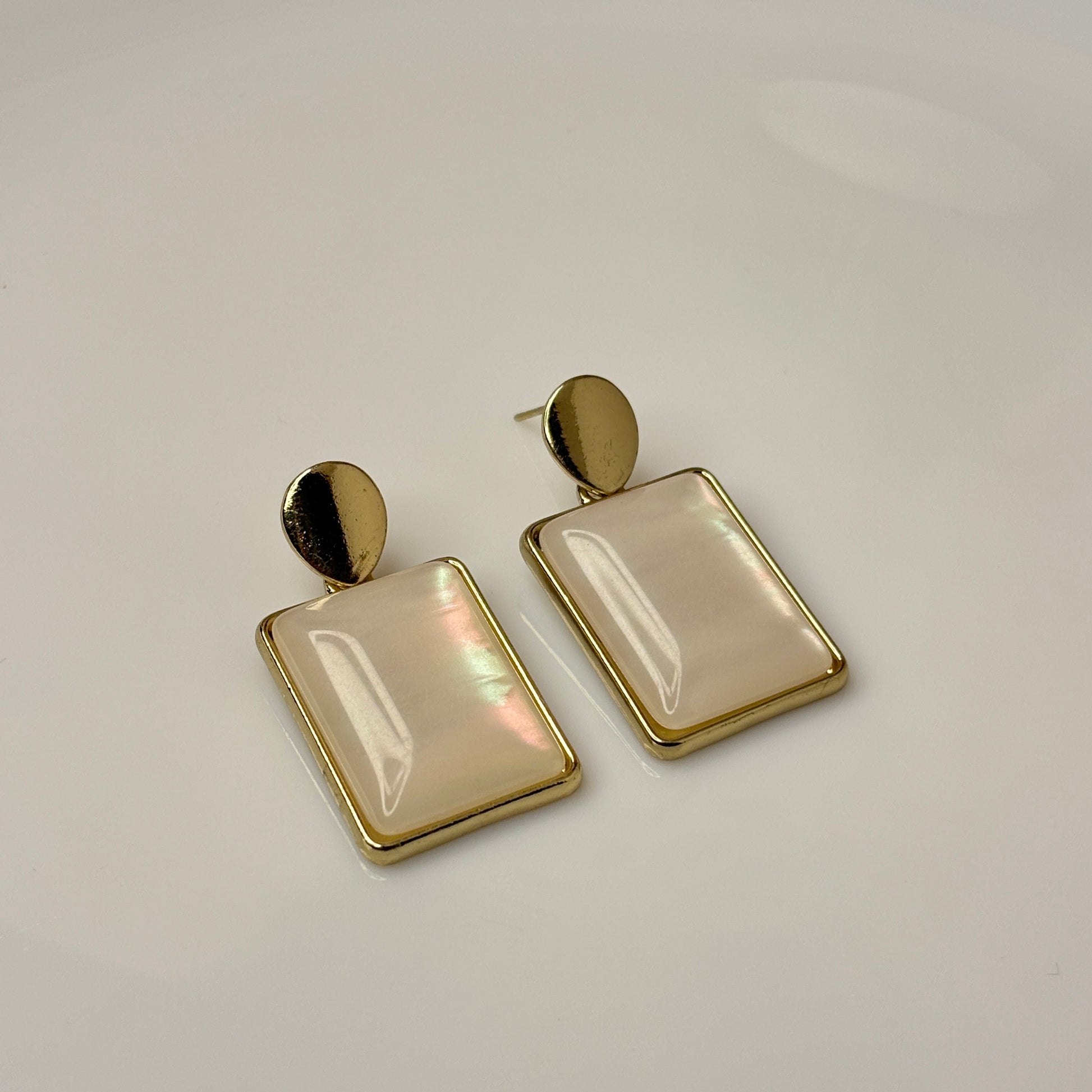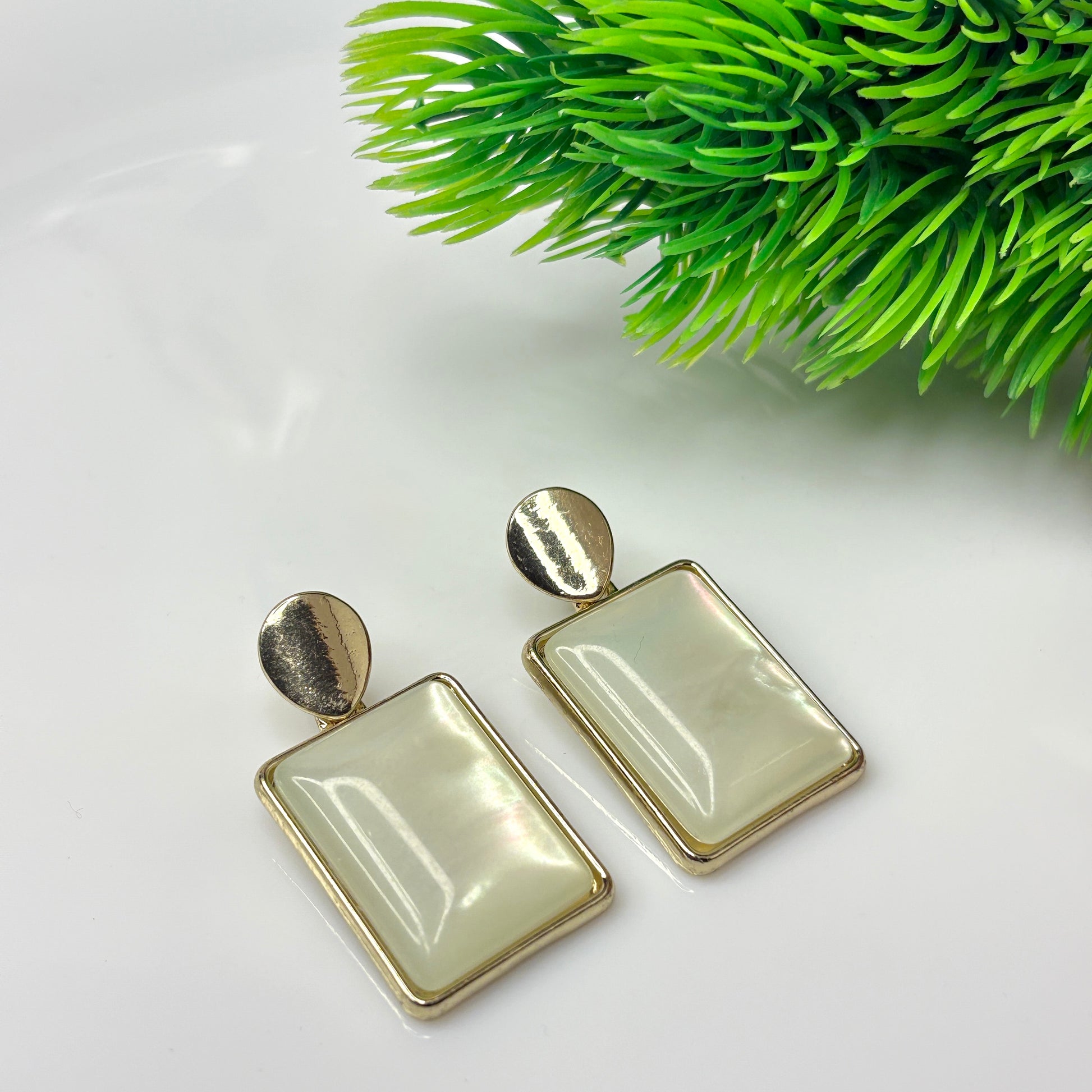A bold yet refined statement, these earrings feature glossy aqua-hued rectangles framed in radiant gold. Their sleek design and vibrant shine make them perfect for adding a touch of elegance to both day and evening looks.