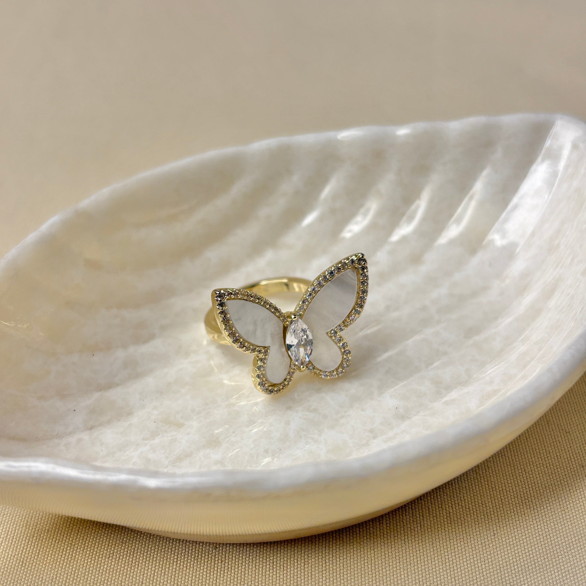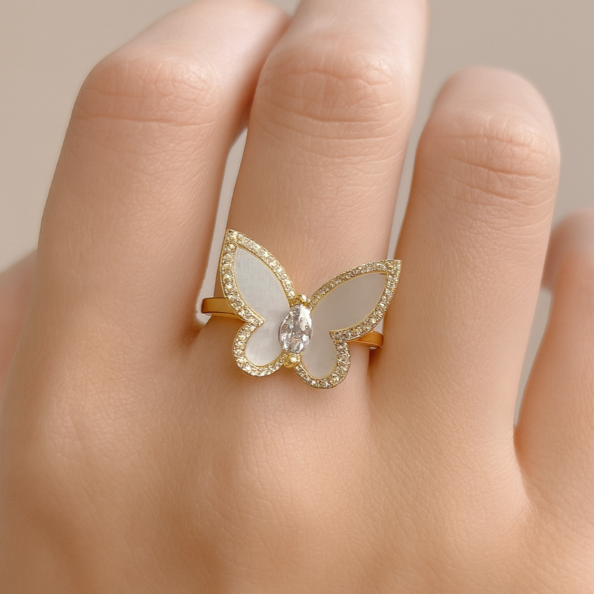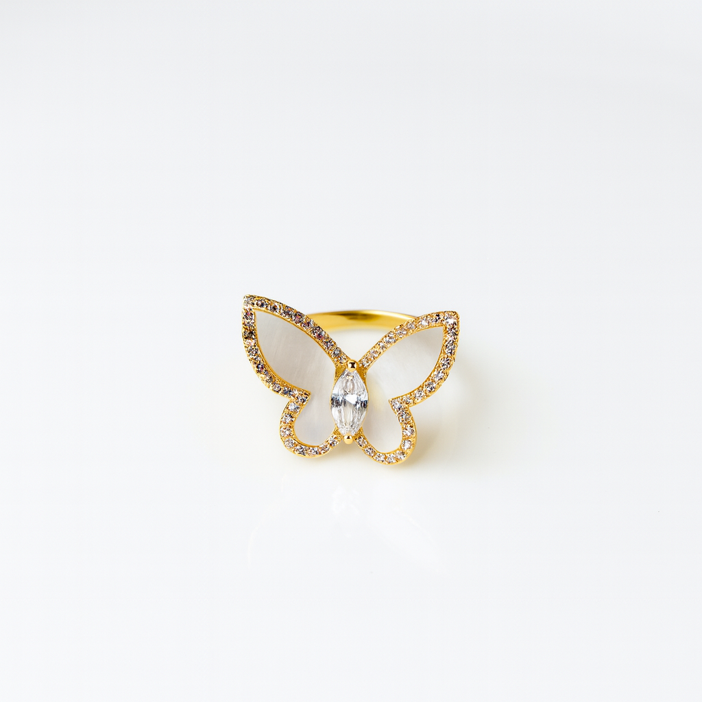 A dazzling butterfly stud with shimmering wings and a radiant stone centerpiece. Crafted to capture elegance, freedom, and a touch of sparkle in every detail.