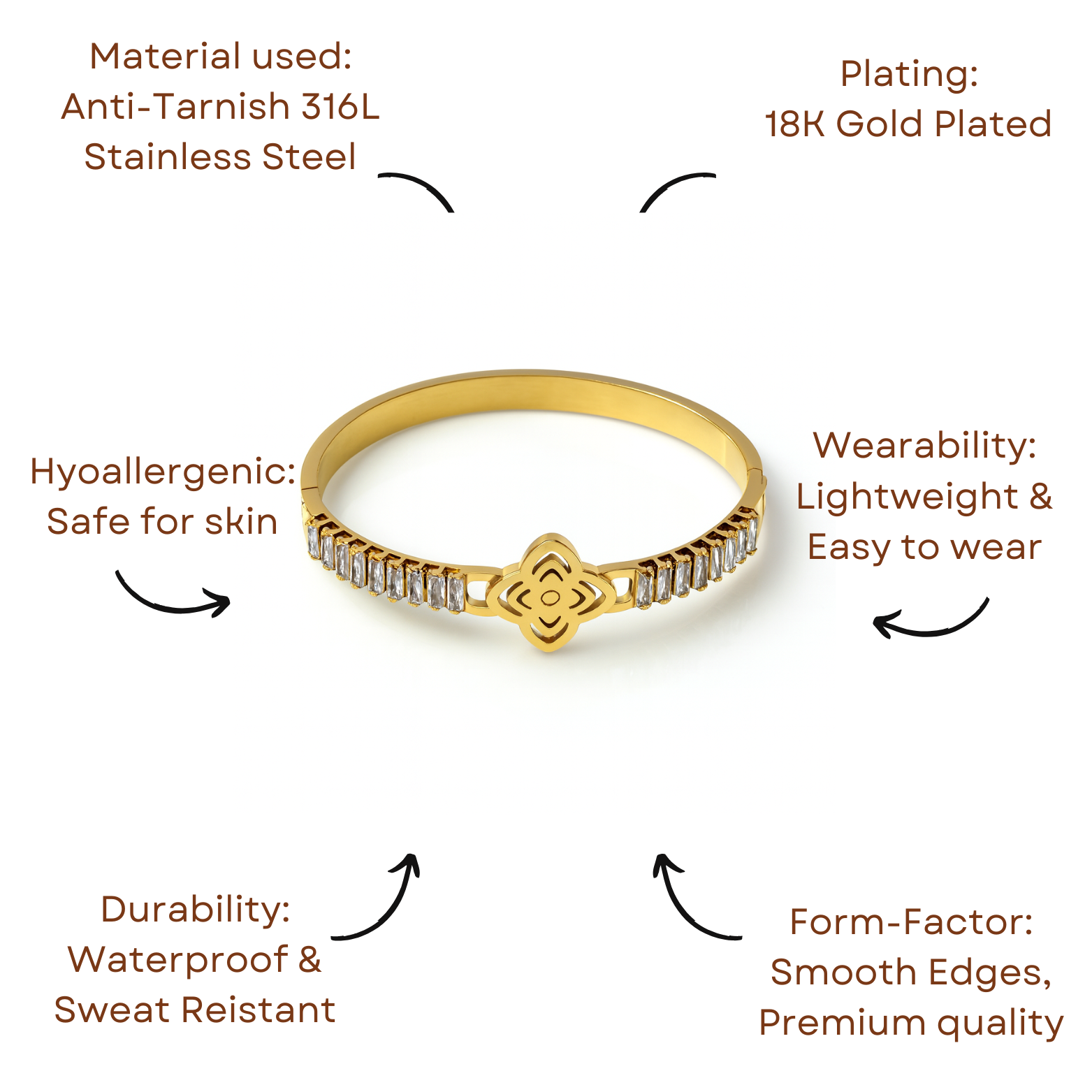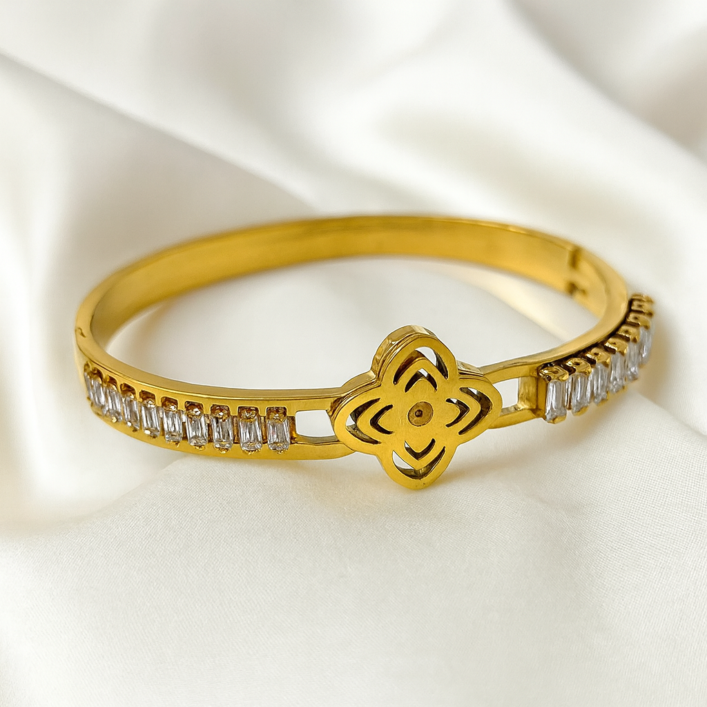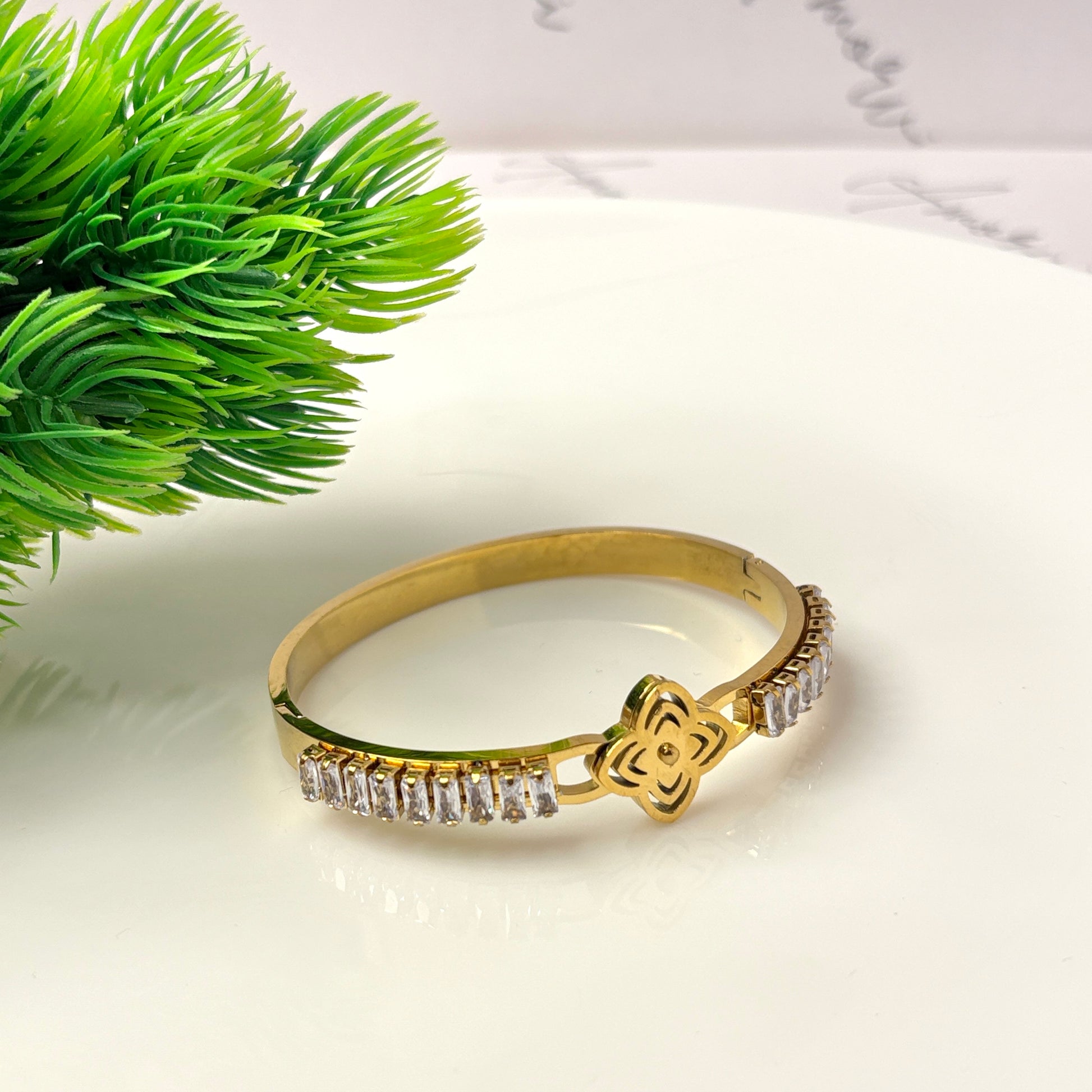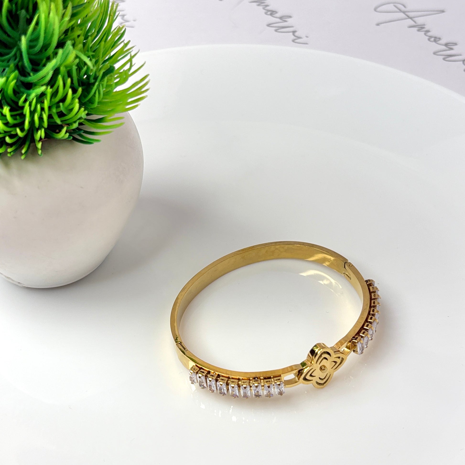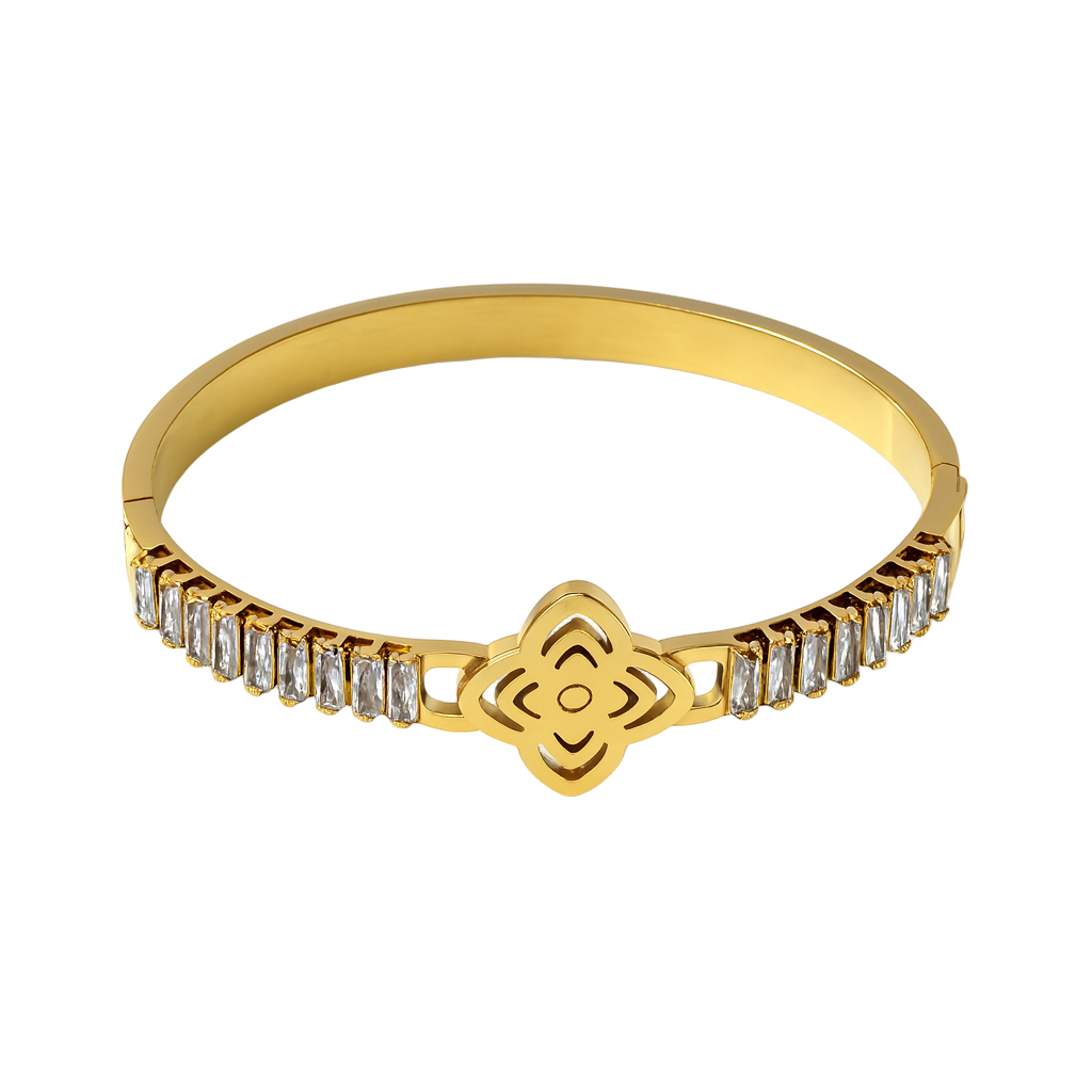Minimal gold bangle with a daisy-inspired center design. Adds a fresh and graceful touch to your wrist.