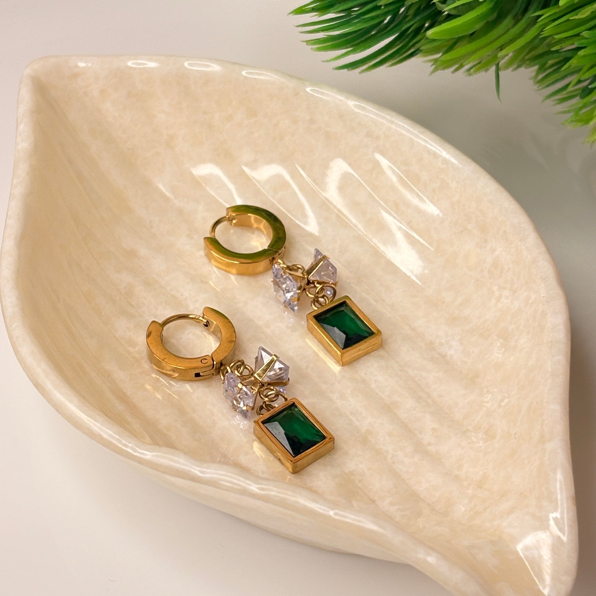 A bold symphony of color and elegance — featuring radiant green stones framed in lustrous gold and paired with sparkling crystal accents. Designed to turn heads, this piece captures modern luxury in its purest form.