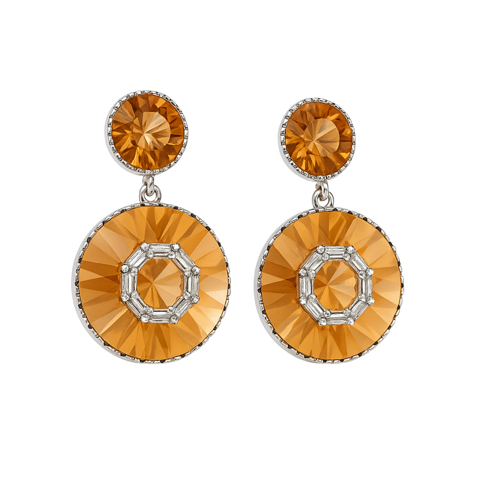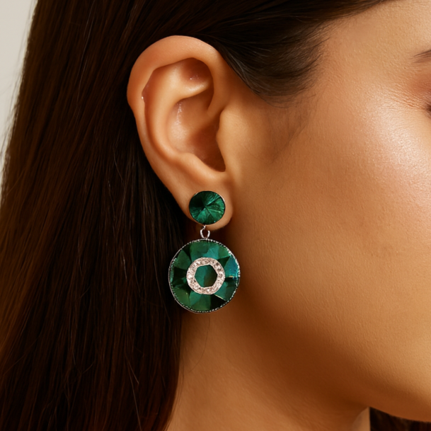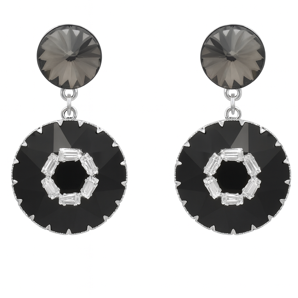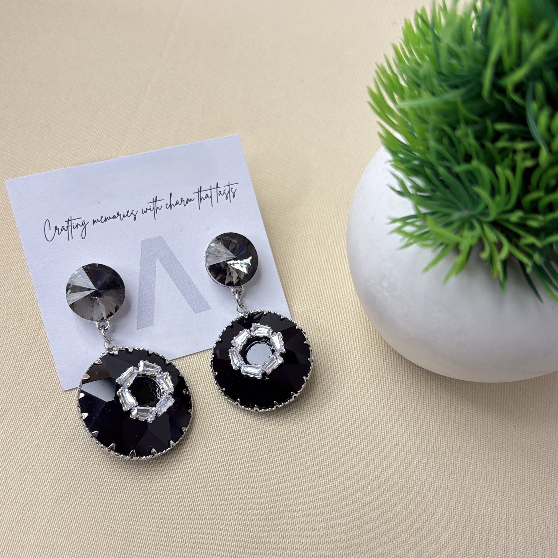 Radiating elegance, these crystal drops sparkle with brilliance, enhanced by a delicate ring of baguette-cut stones. A perfect blend of bold and classy, designed to make your evening looks unforgettable.