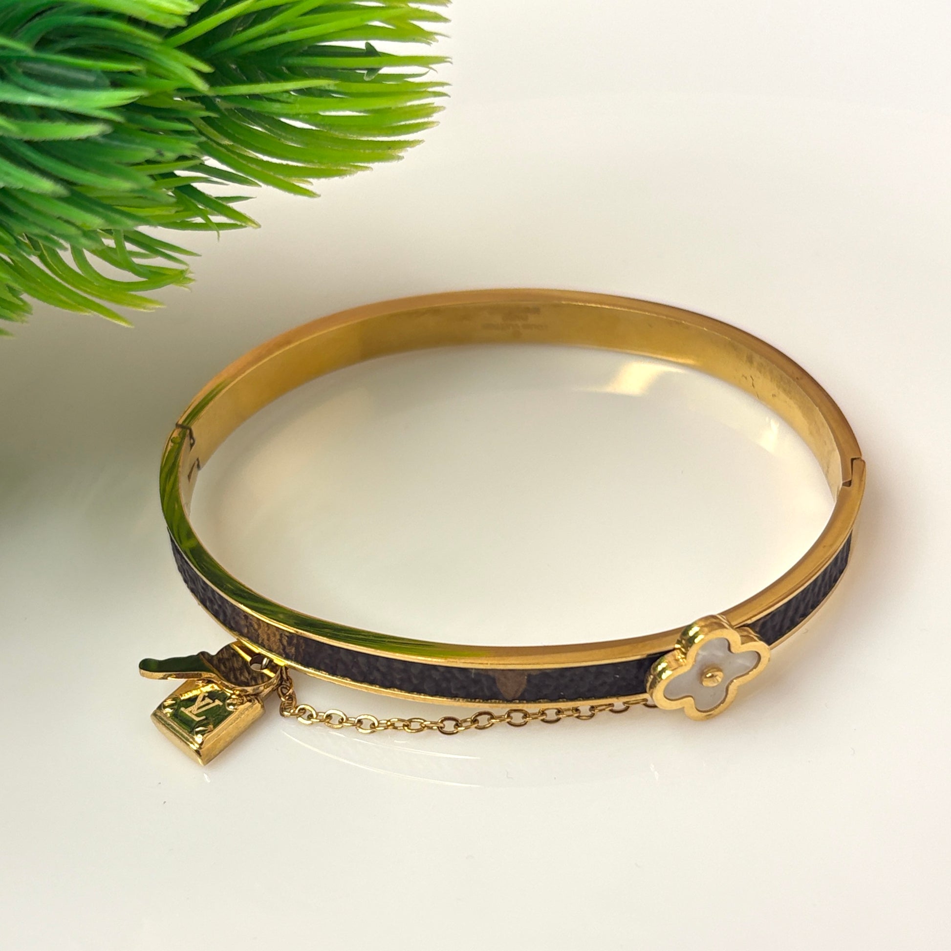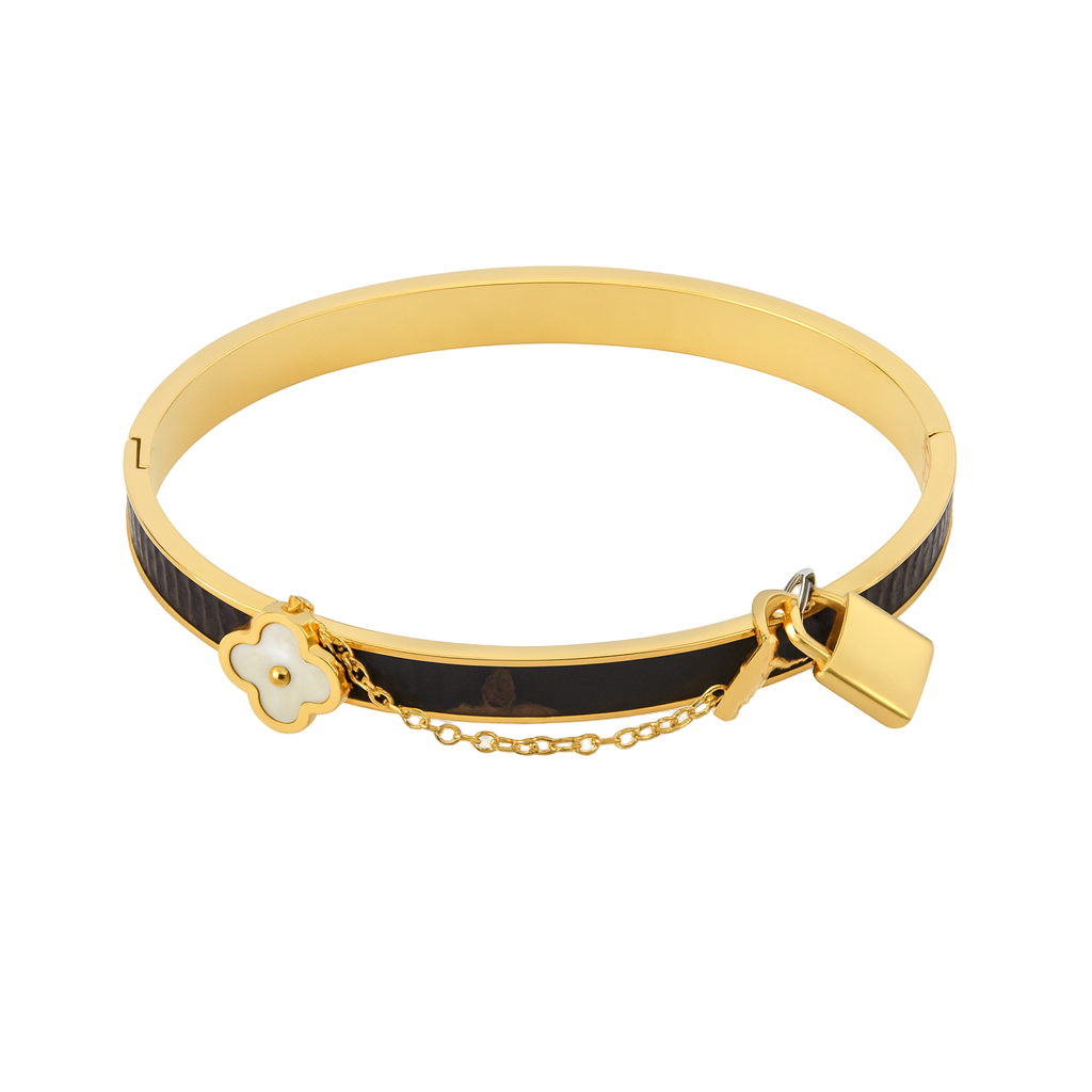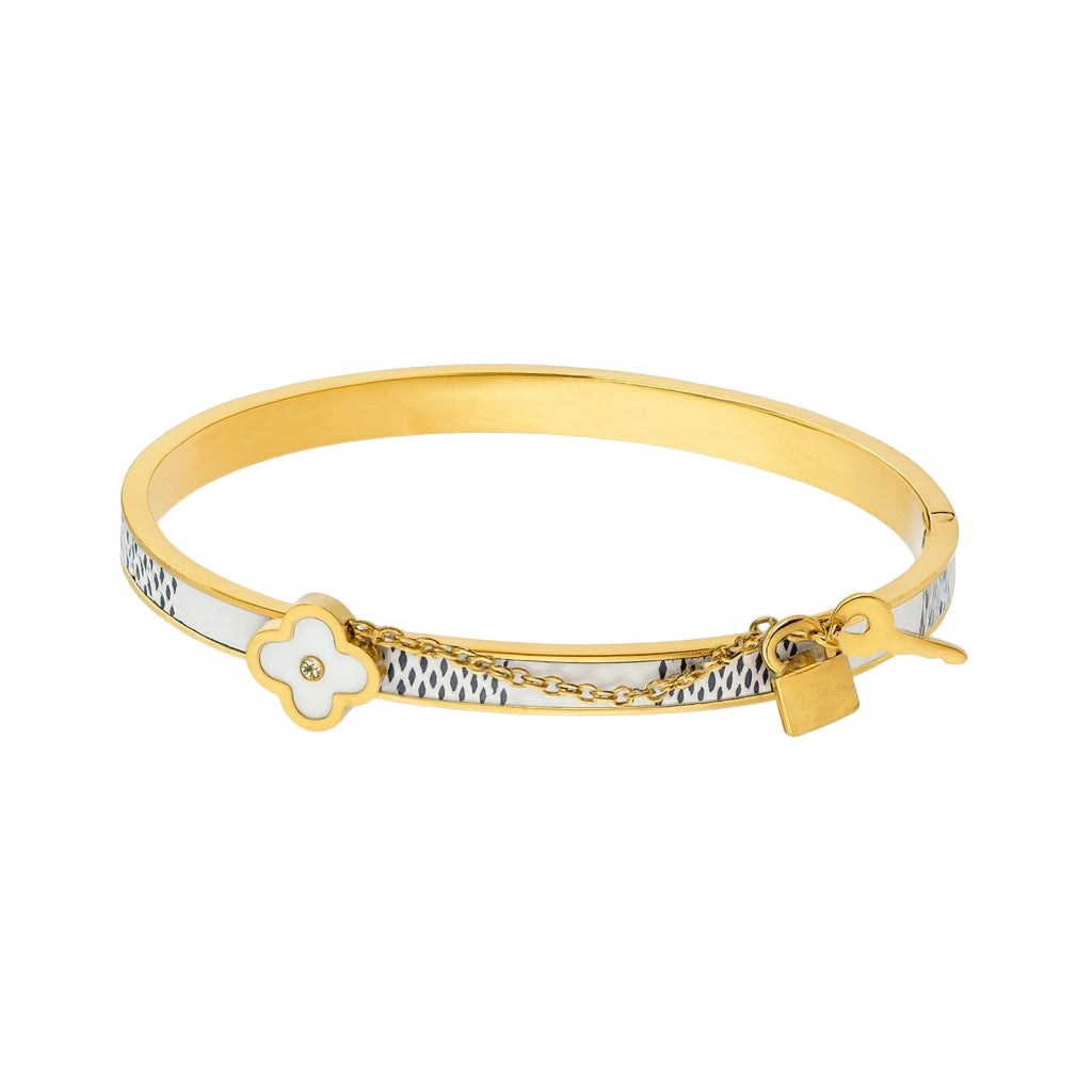 A graceful bangle with chain and charm accents. Elevates everyday looks with effortless sophistication.