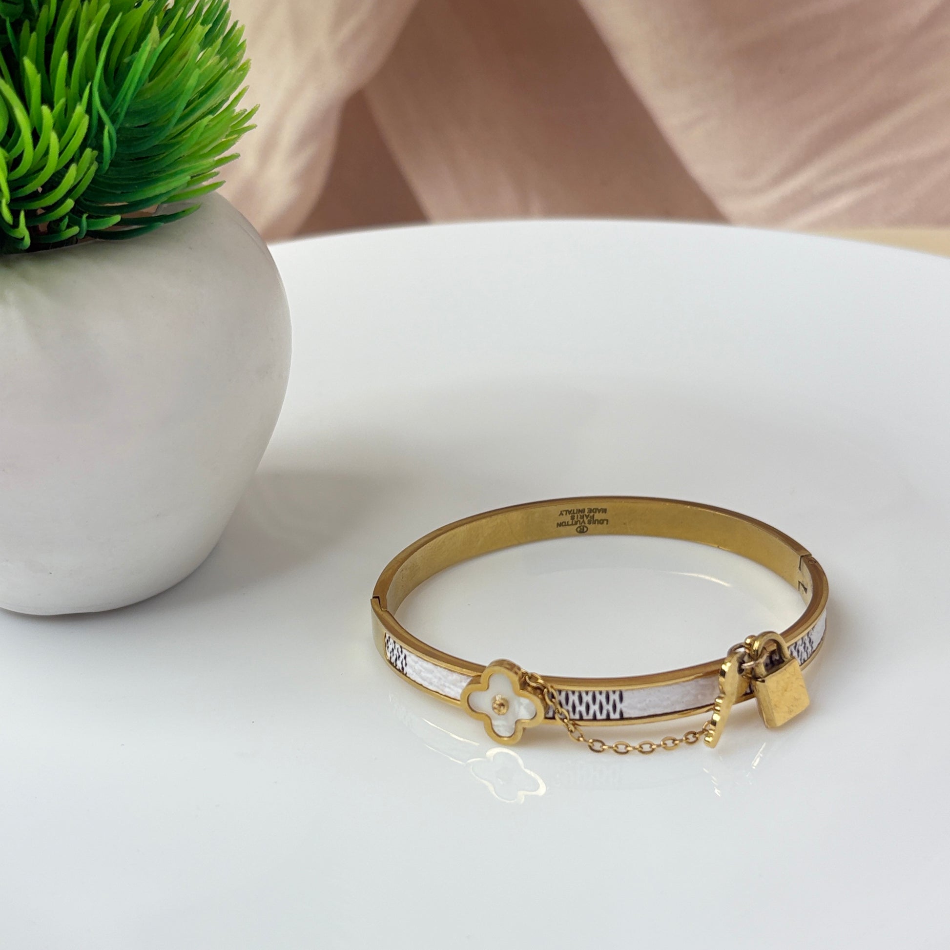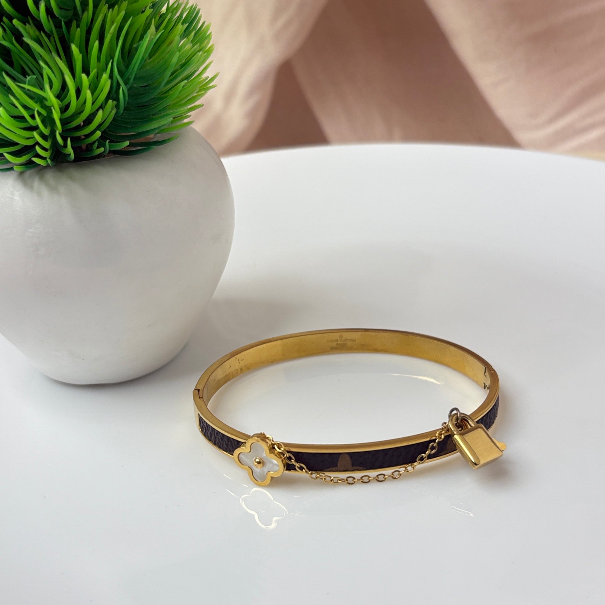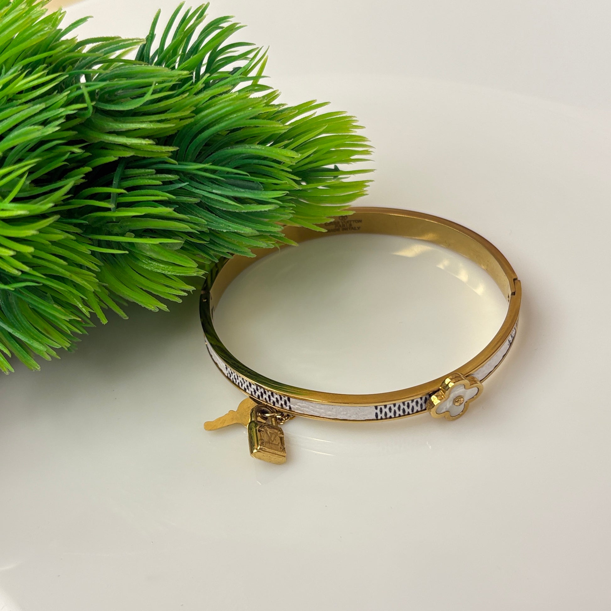 A graceful bangle with chain and charm accents. Elevates everyday looks with effortless sophistication.