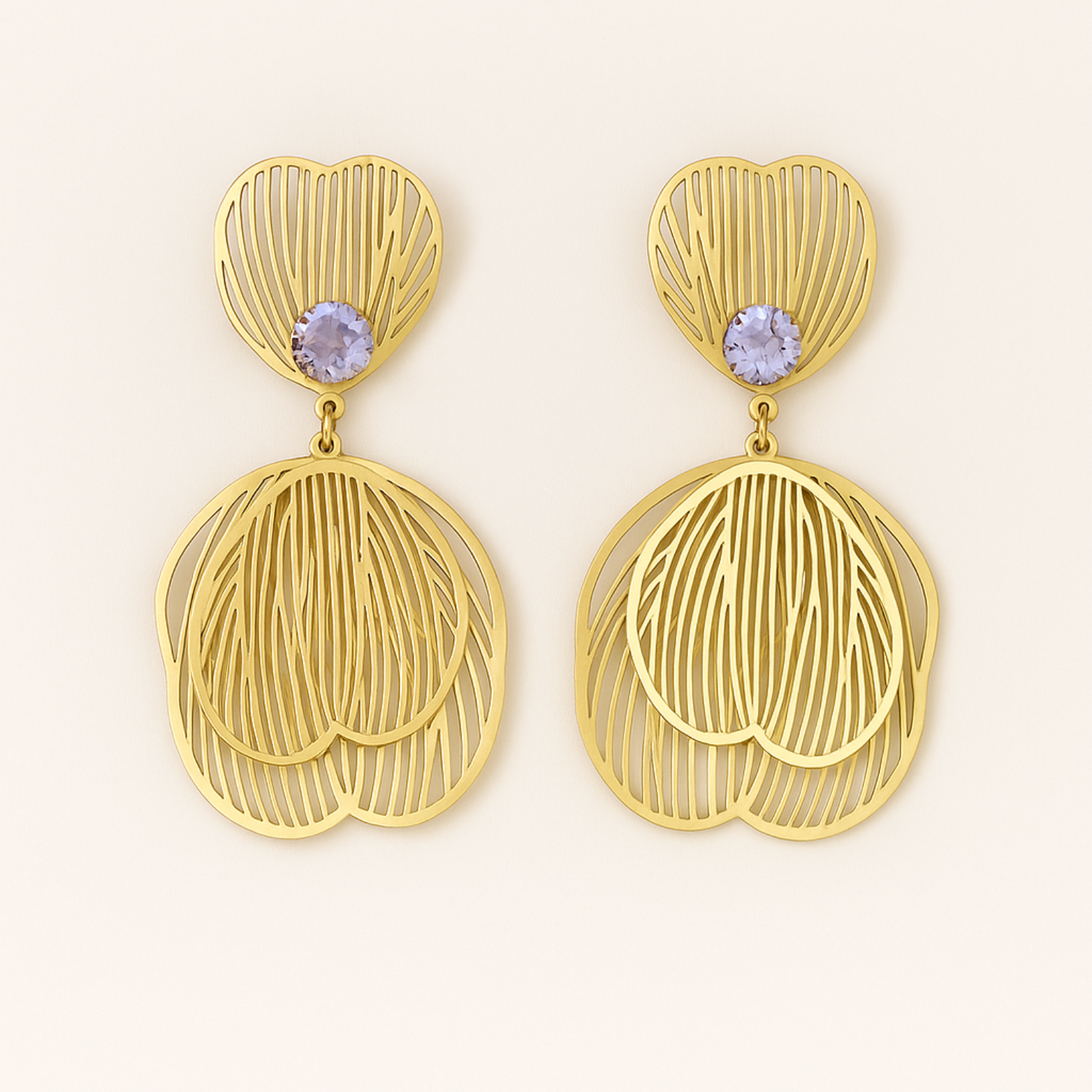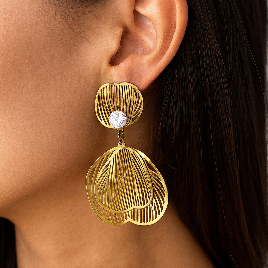 Gilded Veil embodies lightness and allure with its intricate layered petals and sparkling crystal accent. Effortlessly elegant, it dances with every move — a true statement of modern femininity.