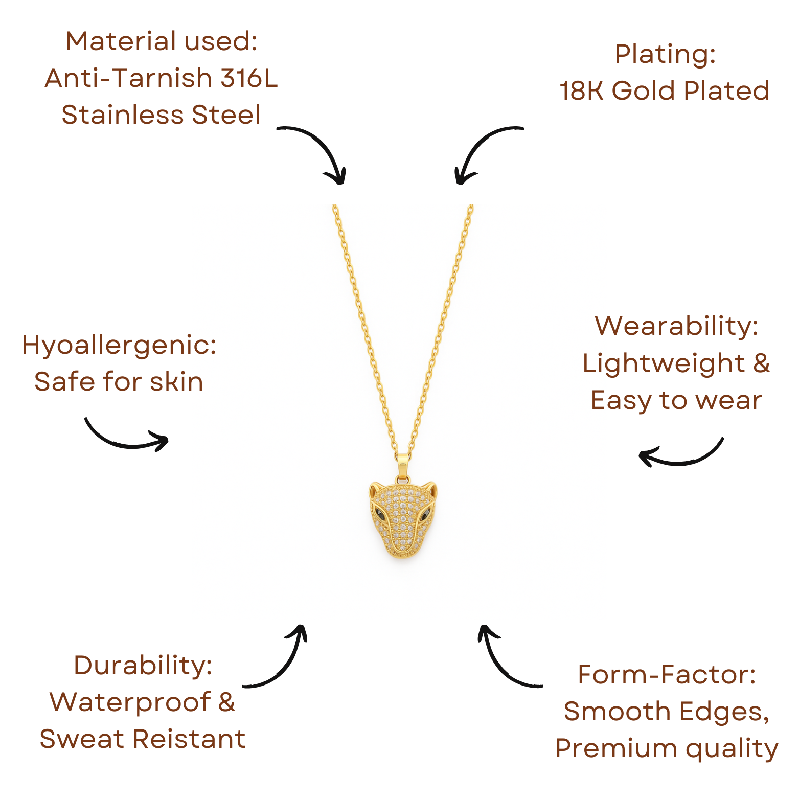 Gold-plated with Electric Furnace 16L. Daily Wear - Water and Sweat Proof. Lightweight and comfortable for daily wear. Hypoallergenic – safe for sensitive skin. Durable, long-lasting finish with premium shine.