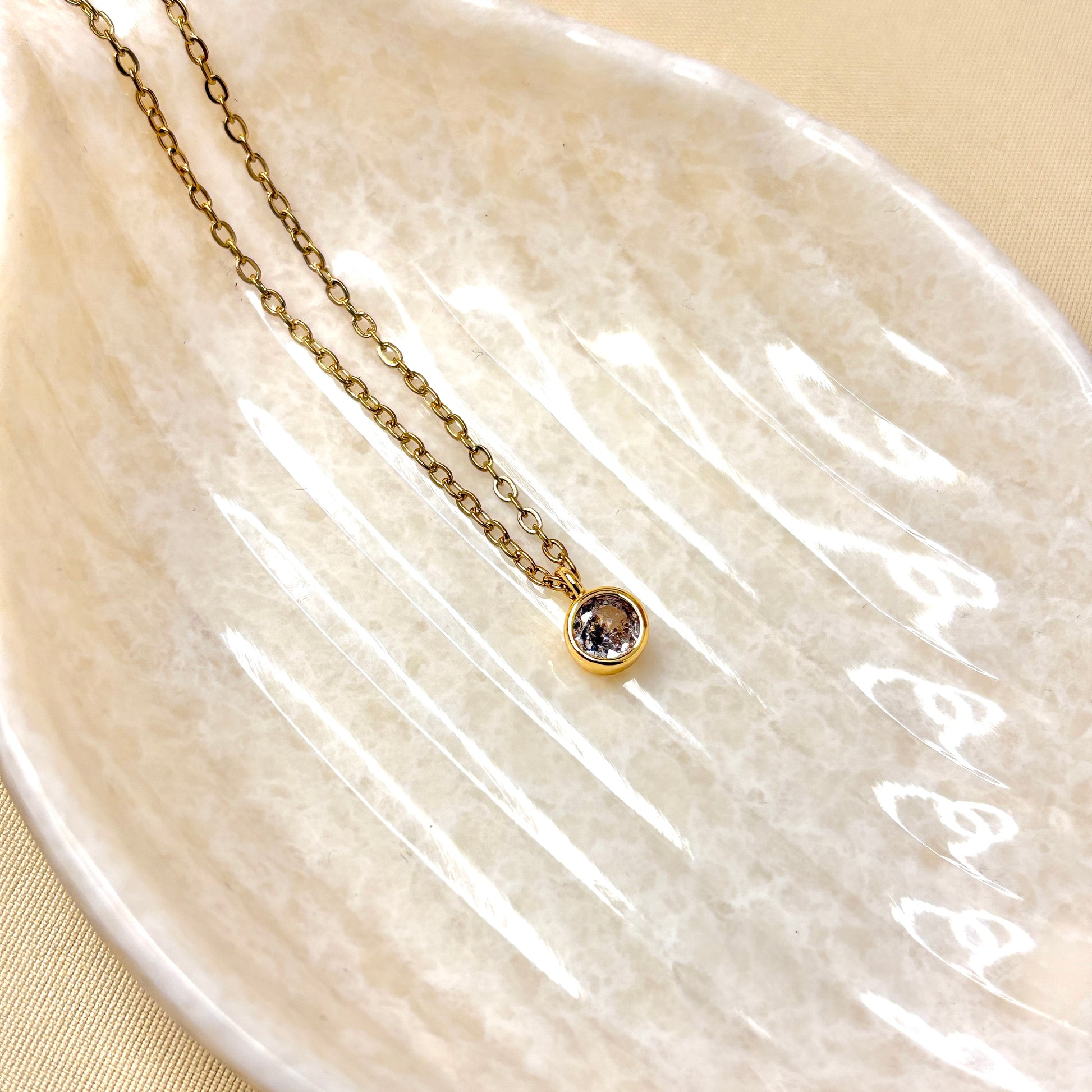 A timeless gold chain with a brilliant solitaire-style charm that catches light from every angle. The ultimate everyday elegance piece for a refined, minimal look.