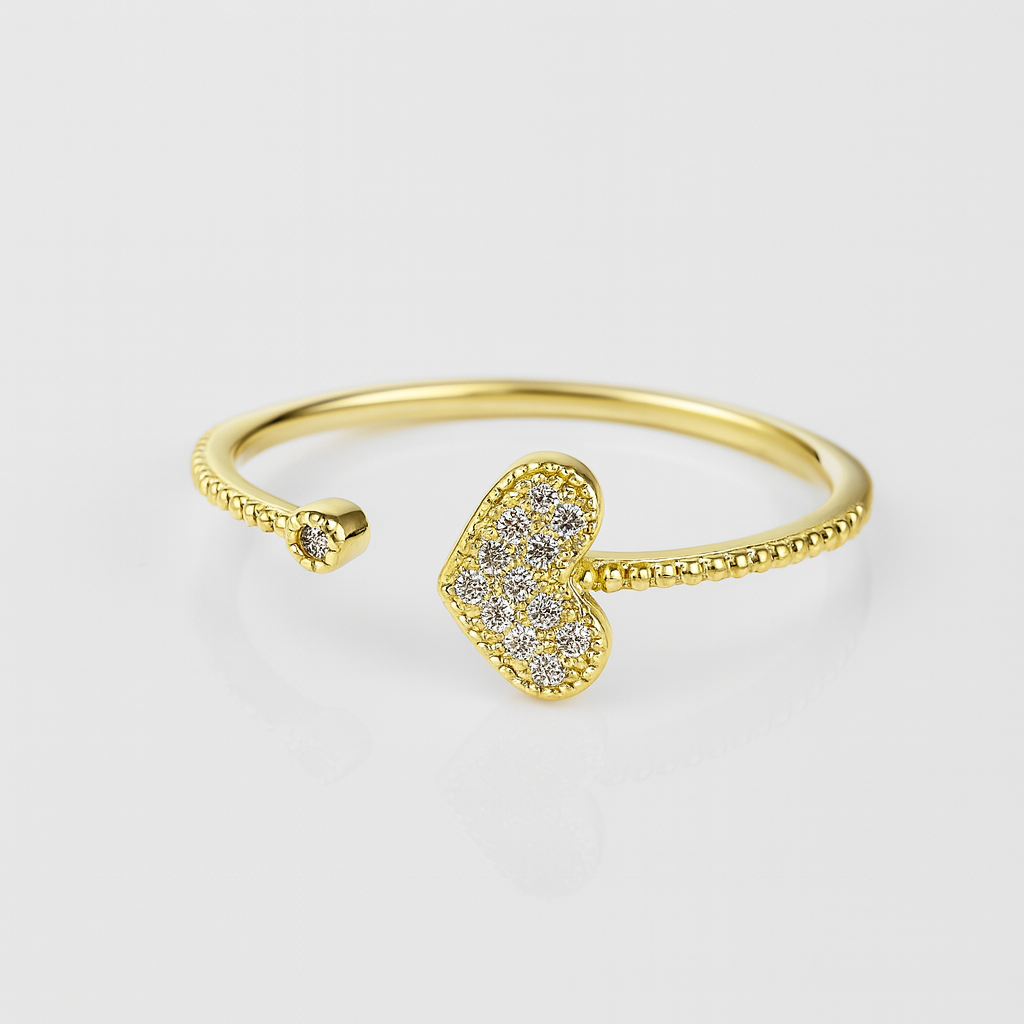 A delicate open ring featuring a shimmering heart motif with pavé stones. Designed to add just the right touch of sparkle and romance to your everyday style.