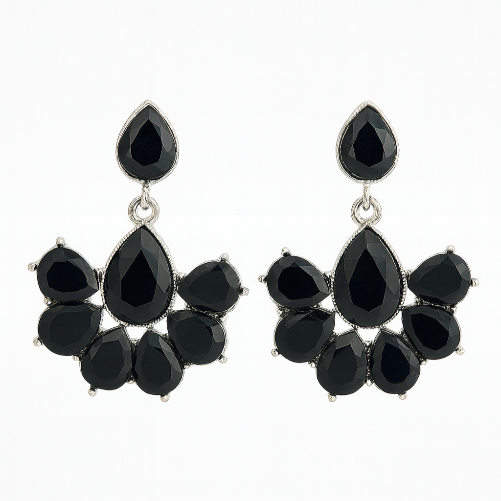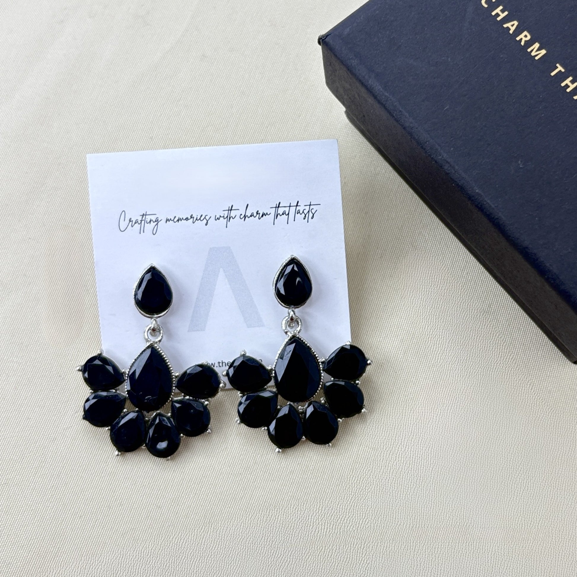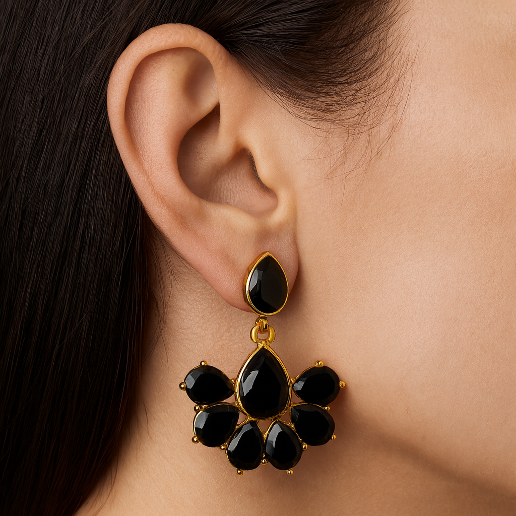 Elegant and striking, the Midnight Petal Drop Earrings feature deep black stones set in a graceful floral design. Perfect for adding a touch of mystery and sophistication to any outfit, they’re a statement piece for both evening glamour and modern chic style.