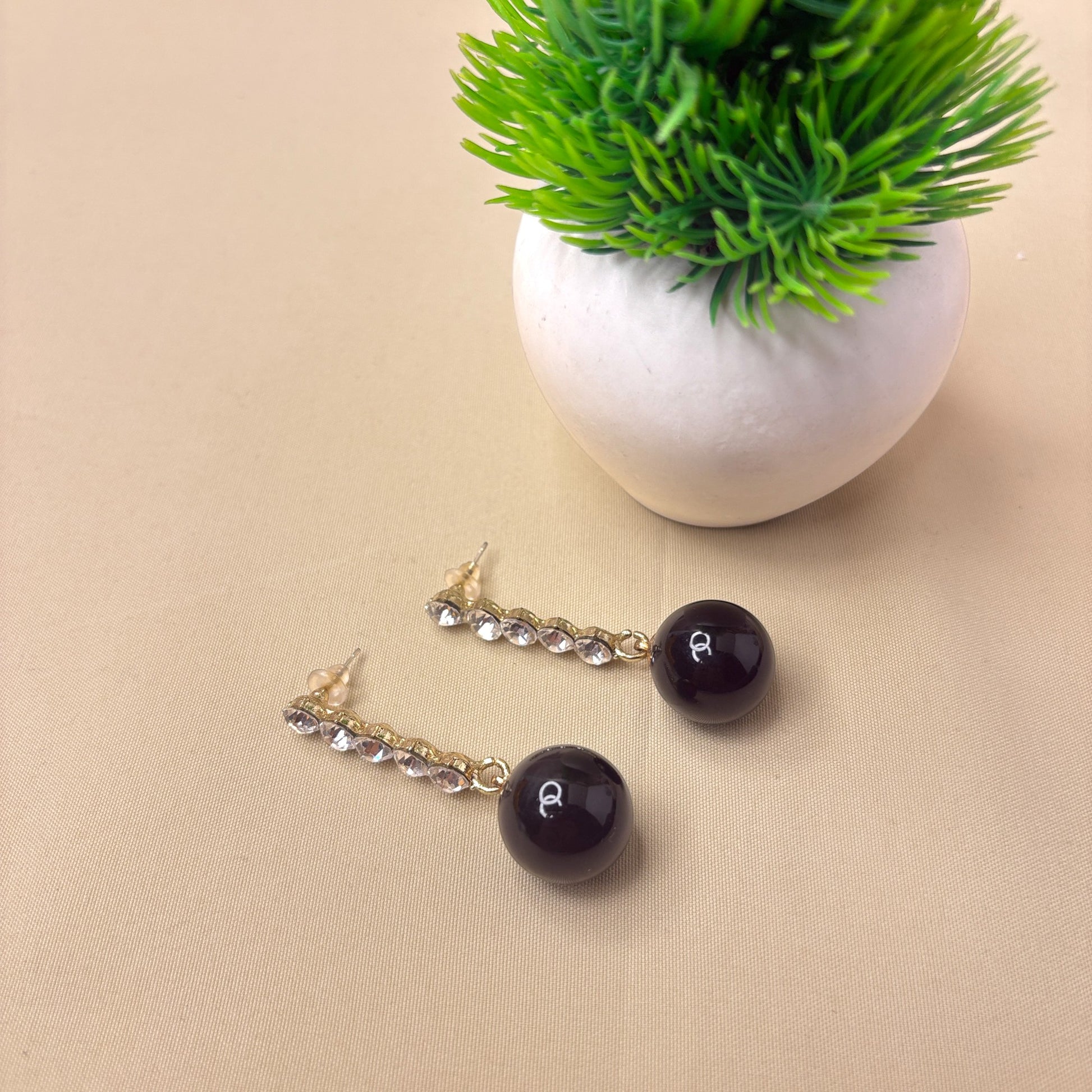 Featuring dazzling crystal accents leading to bold black gemstone drops, these earrings exude elegance and drama. Perfect for adding a touch of sophistication to evening wear.