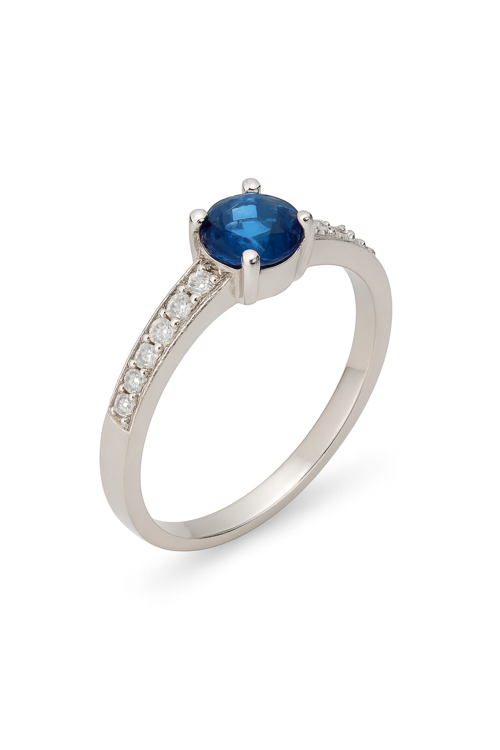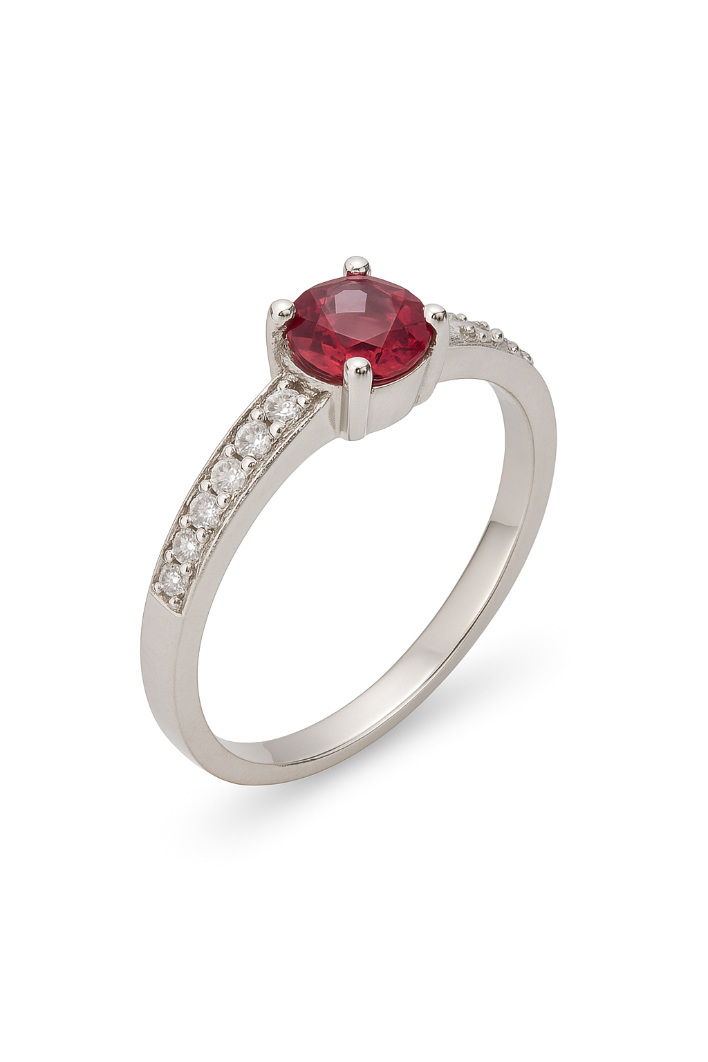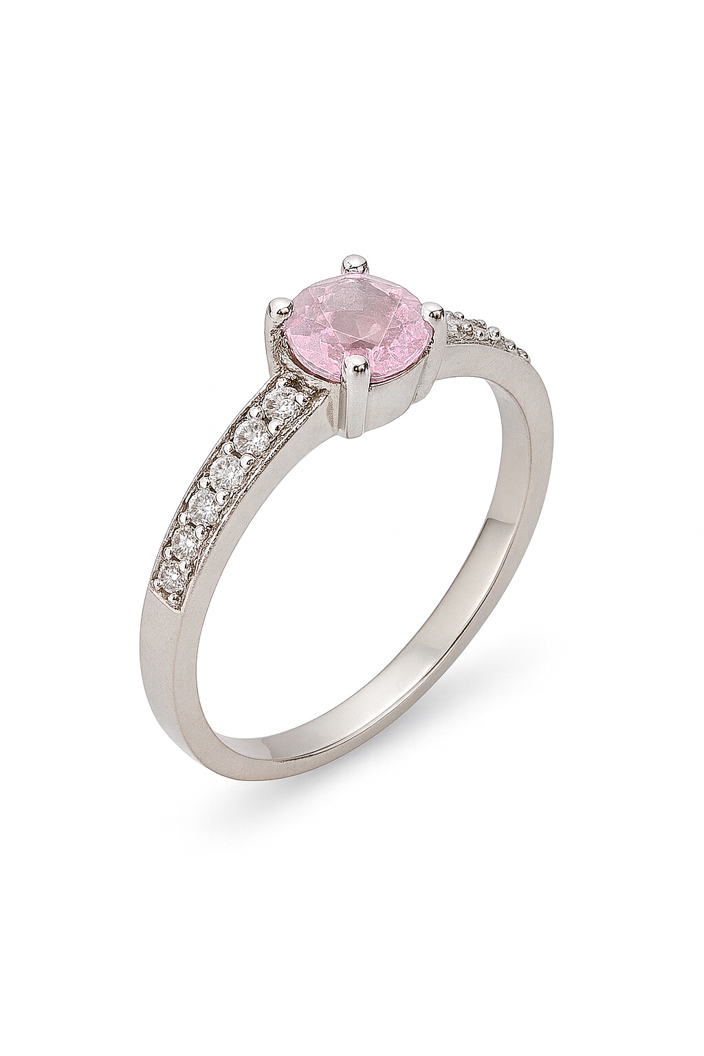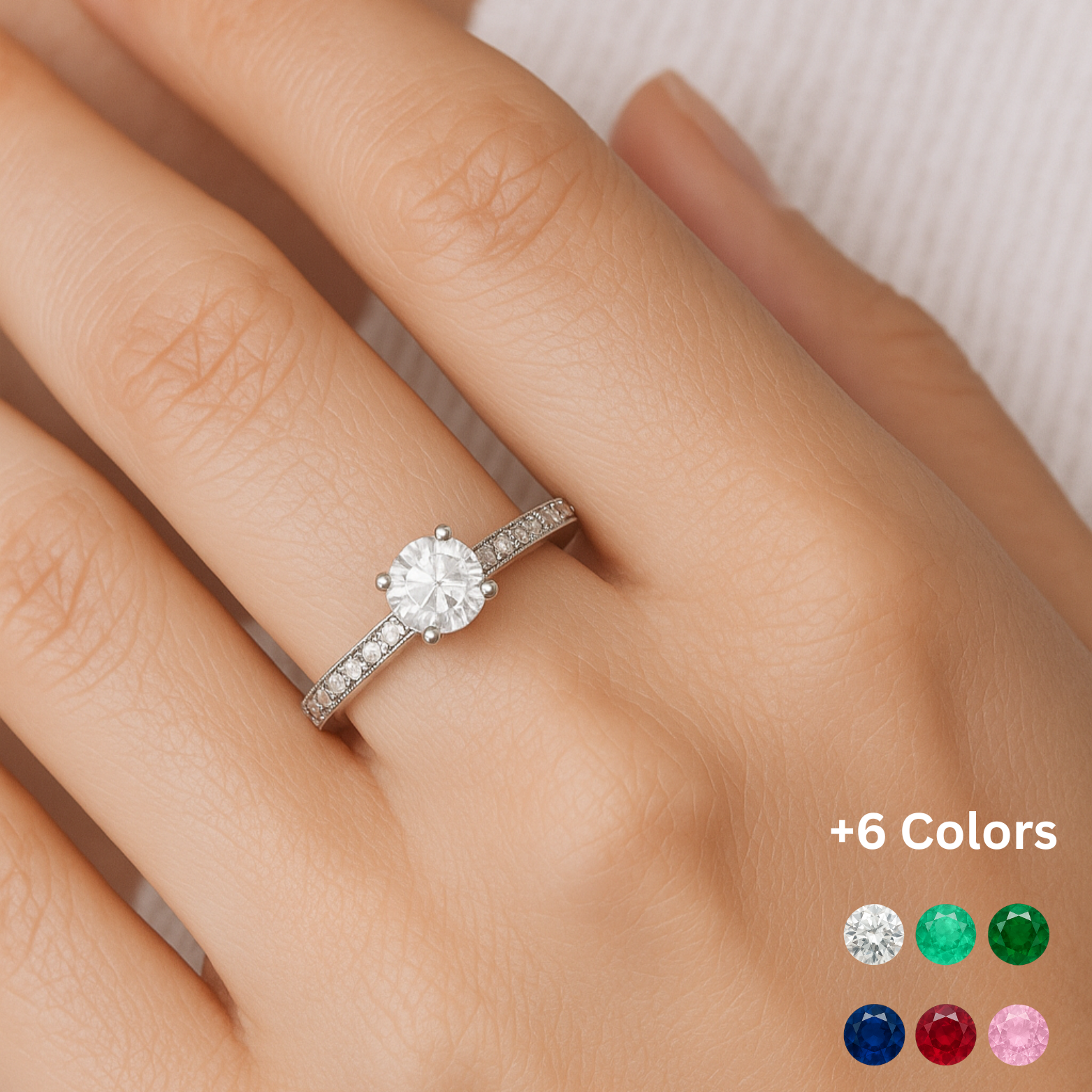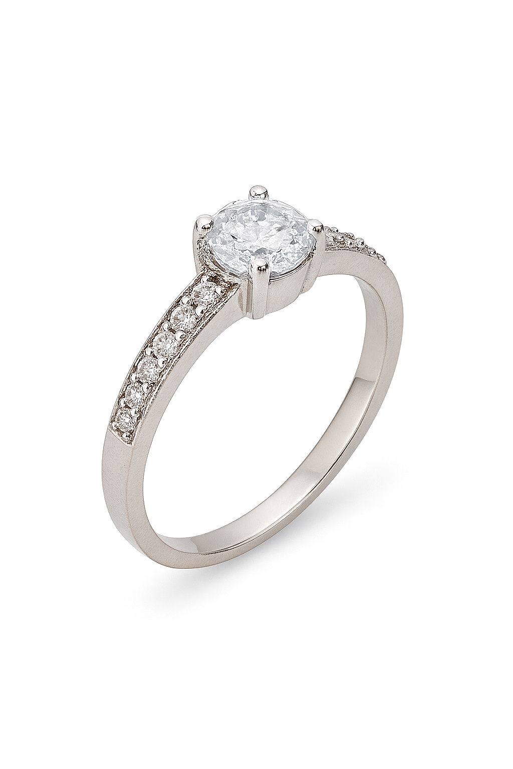 A timeless solitaire ring with a brilliant round-cut crystal, accented by a line of sparkling stones along the band. Elegant, versatile, and perfect for both everyday wear and special occasions.