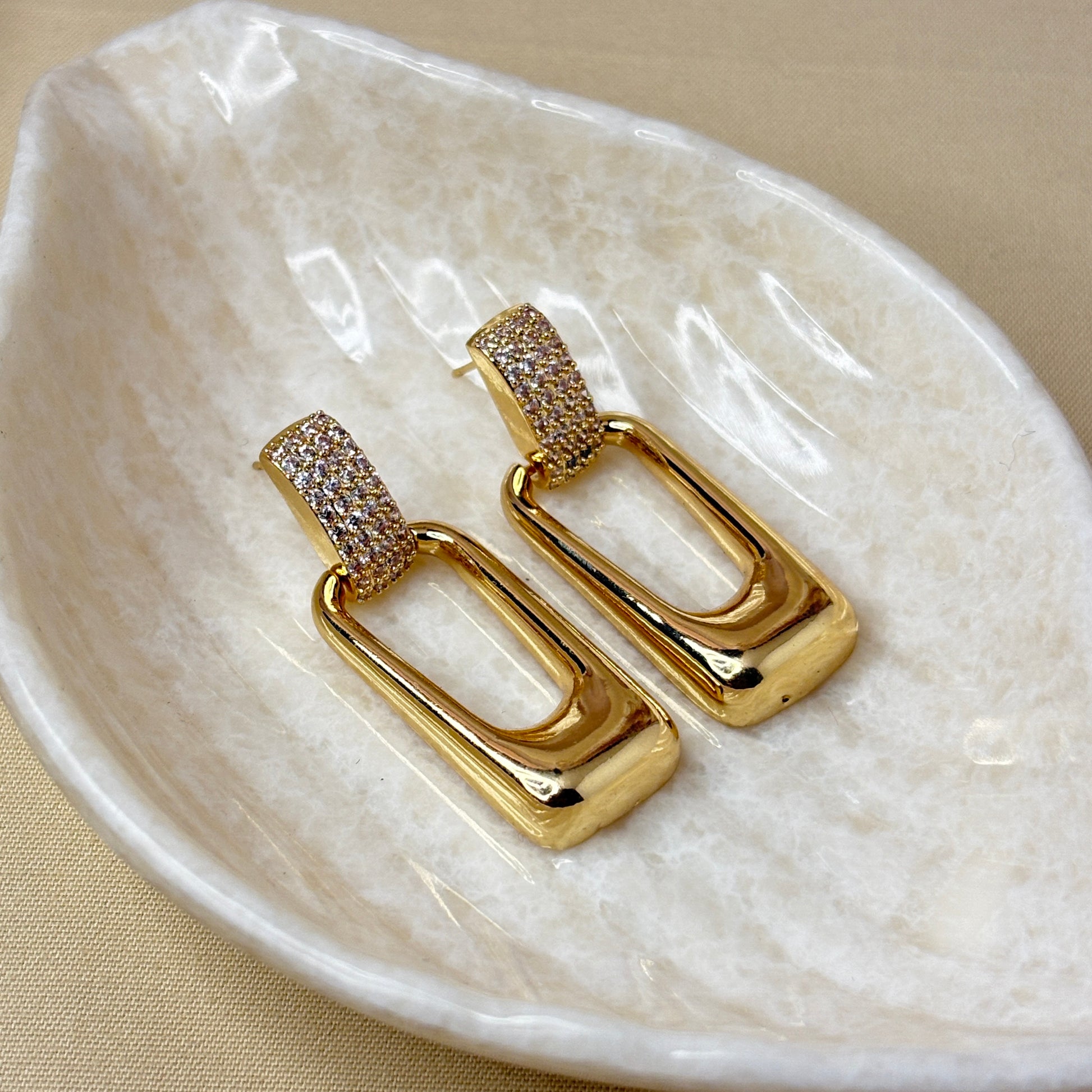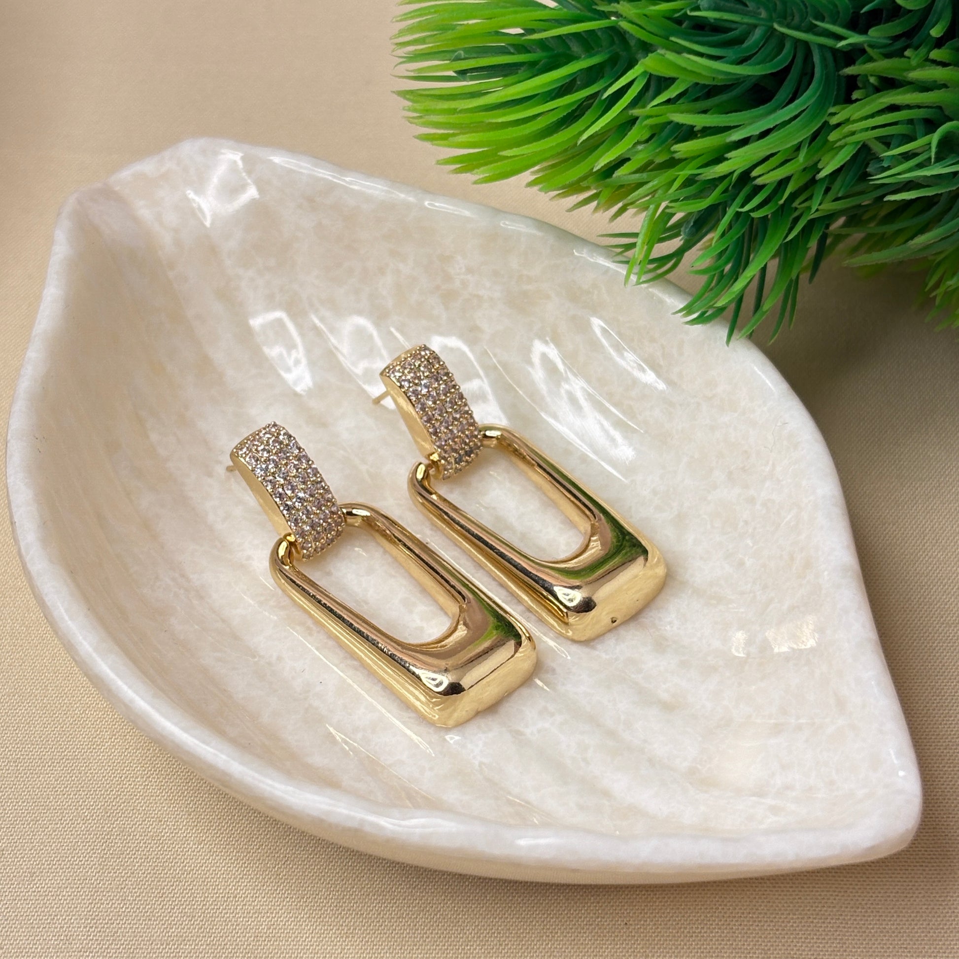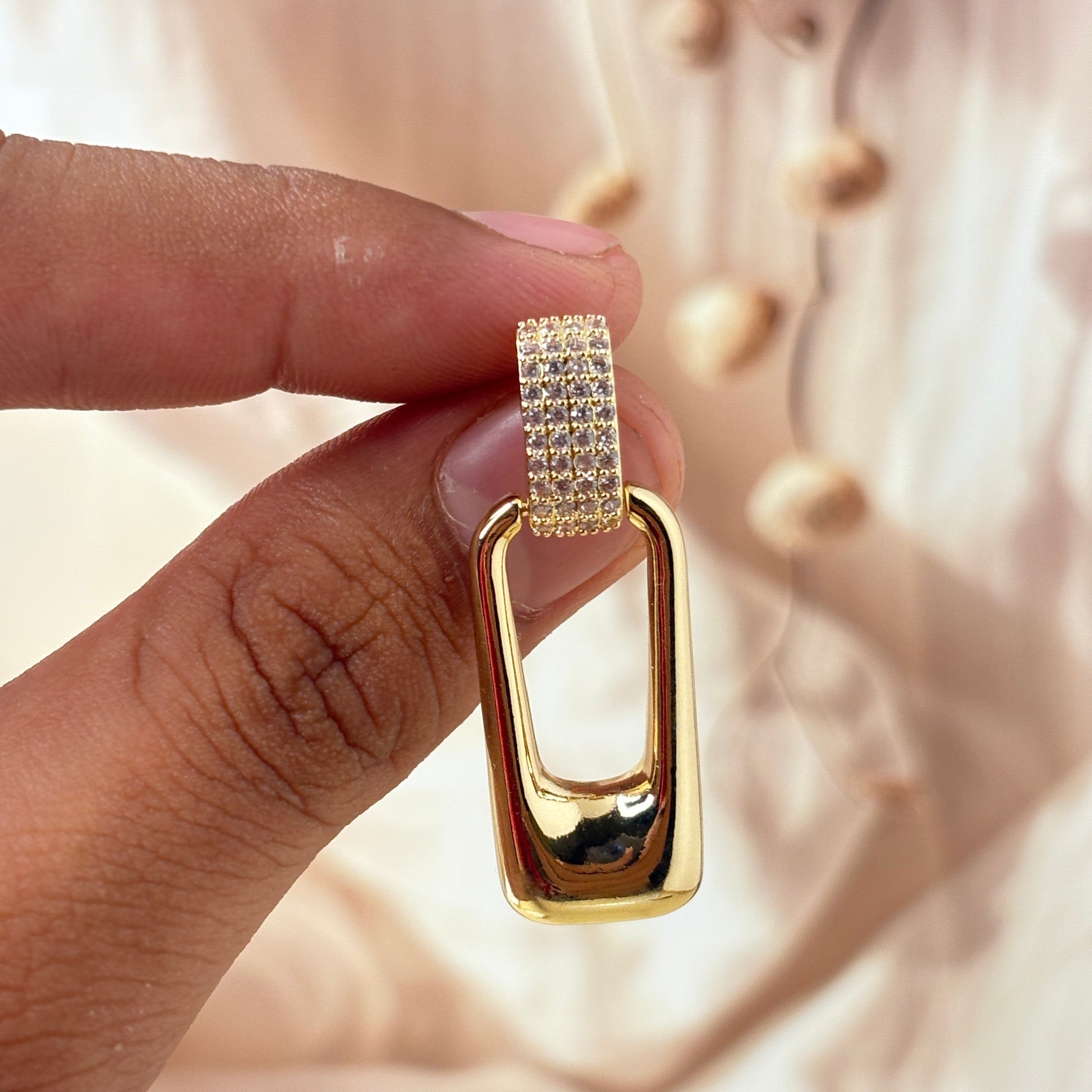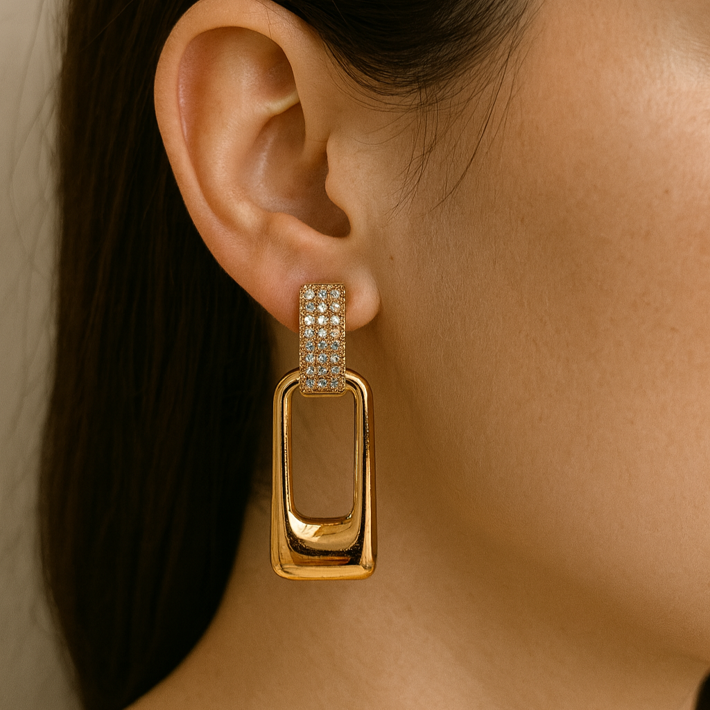 Nova Loop blends bold geometry with luminous sparkle. The crystal-encrusted tops flow into sleek golden loops, creating a statement piece that radiates power, poise, and polished elegance.