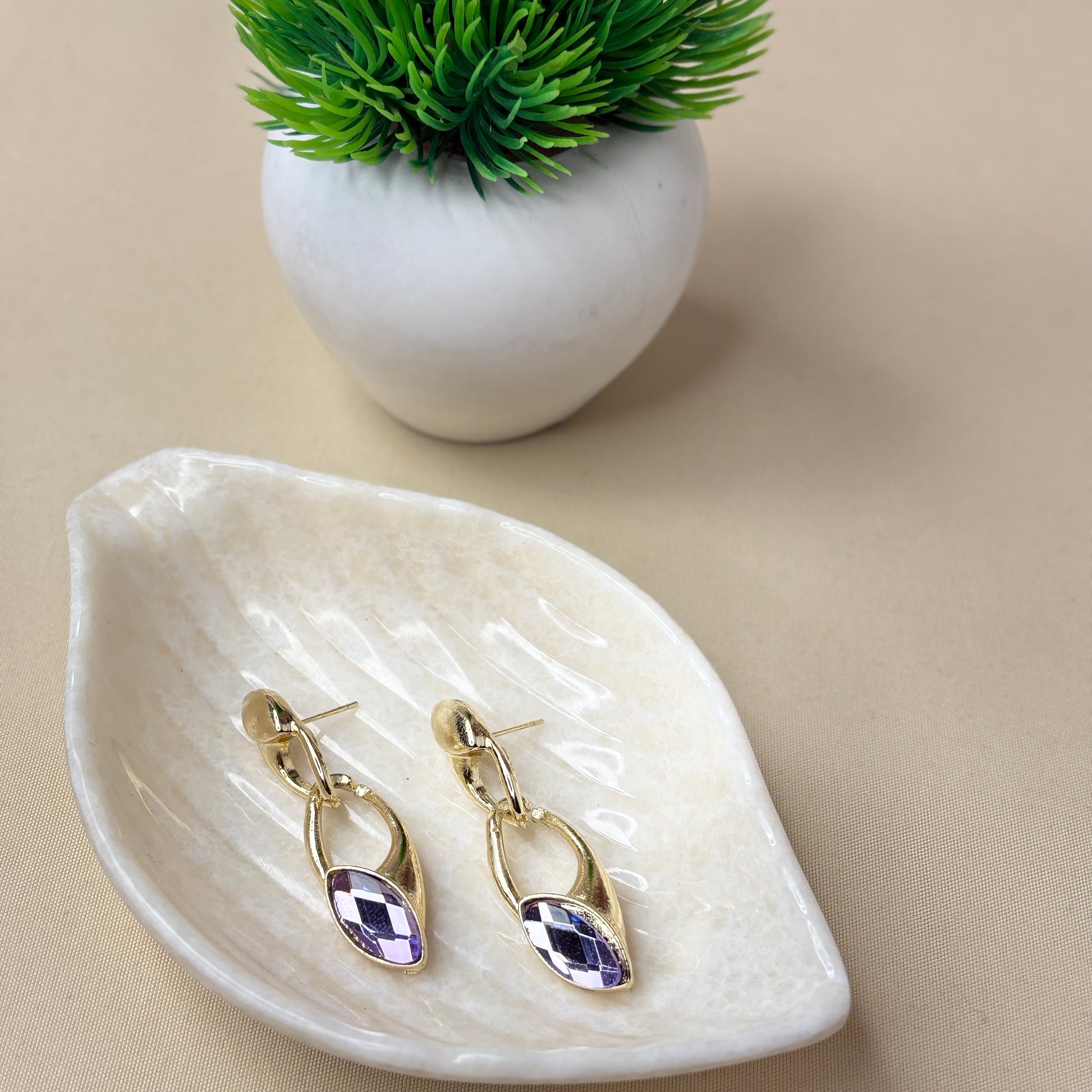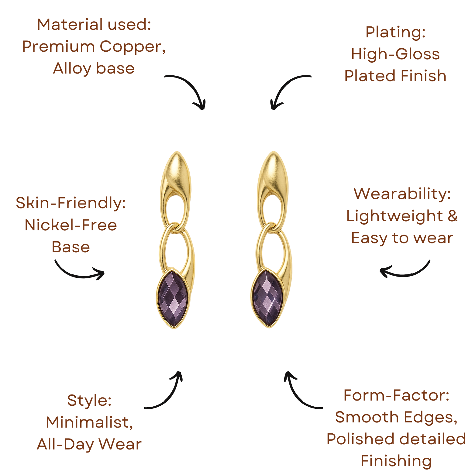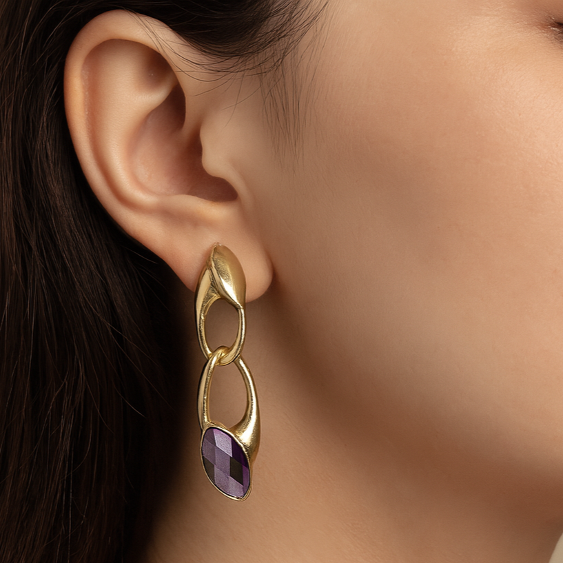 Elegant gold links flow into faceted purple stones, creating a chic blend of modern design and timeless sparkle. A perfect pick for both casual glam and evening elegance.