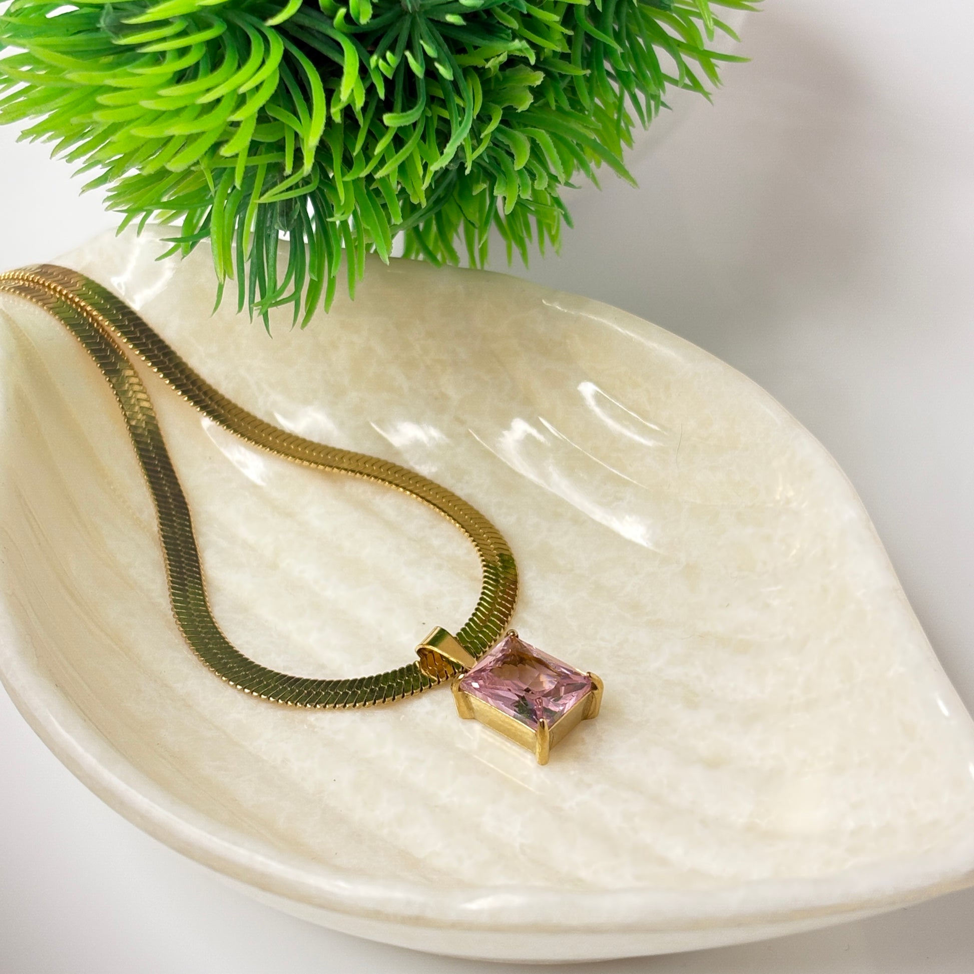 Royal Prism radiates timeless allure with its striking square-cut gemstone, framed in lustrous gold. Available in rich emerald green and soft blush pink, it embodies elegance, confidence, and effortless charm.
