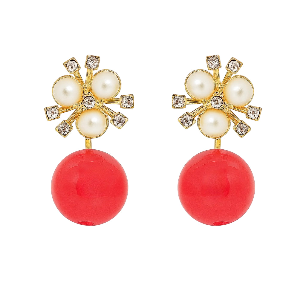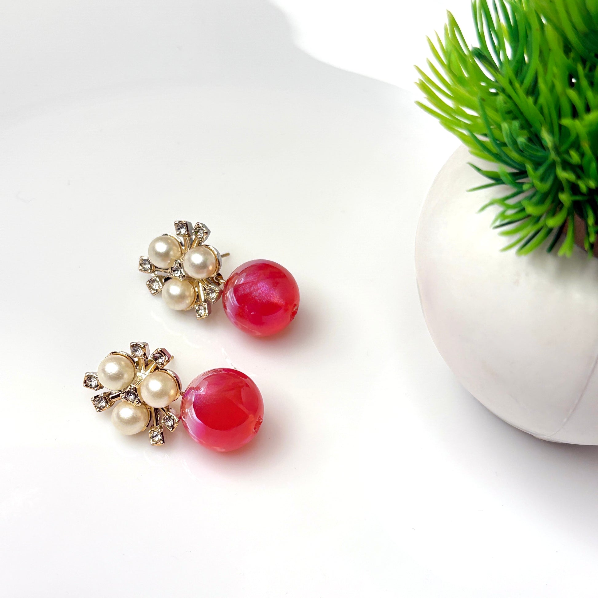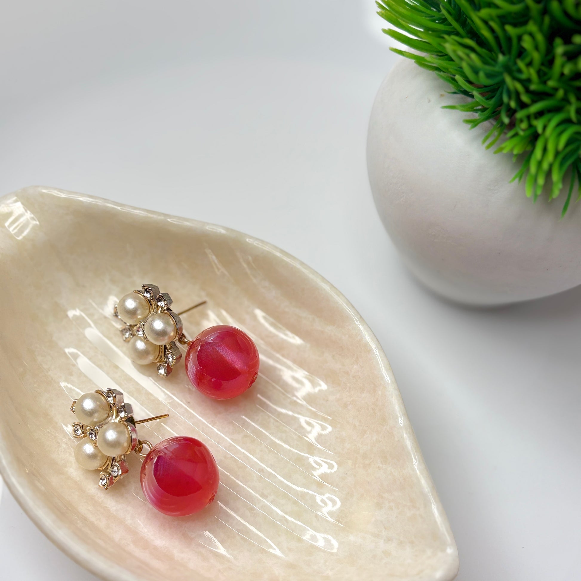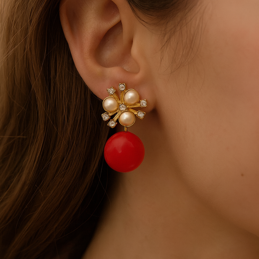Floral-inspired studs with pearl accents, finished with bold red drops for a pop of color. A playful yet elegant piece that instantly brightens up any outfit.