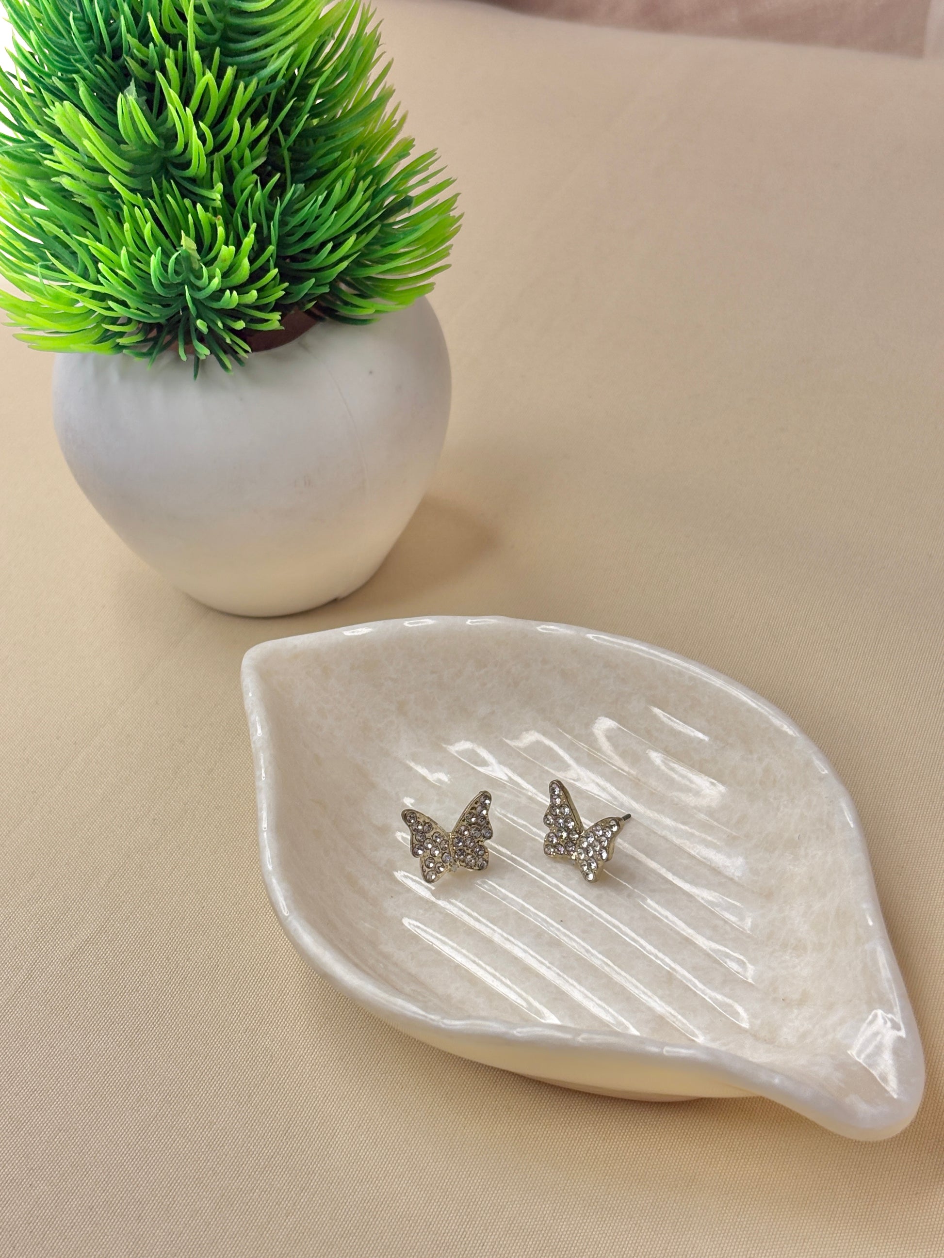 Dainty butterfly studs encrusted with shimmering stones, adding a touch of sparkle to every look. A perfect blend of elegance and playfulness for your everyday style.