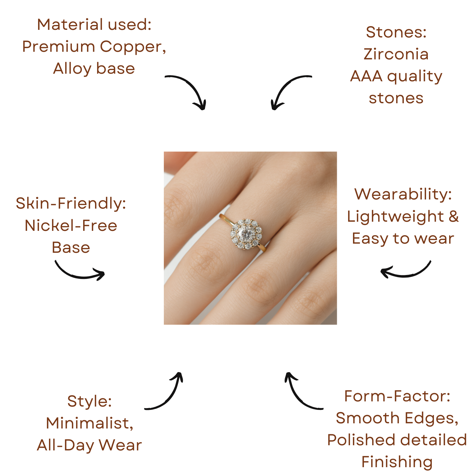 A sparkling cluster of crystals set on a sleek golden band, made to turn everyday moments into special ones.