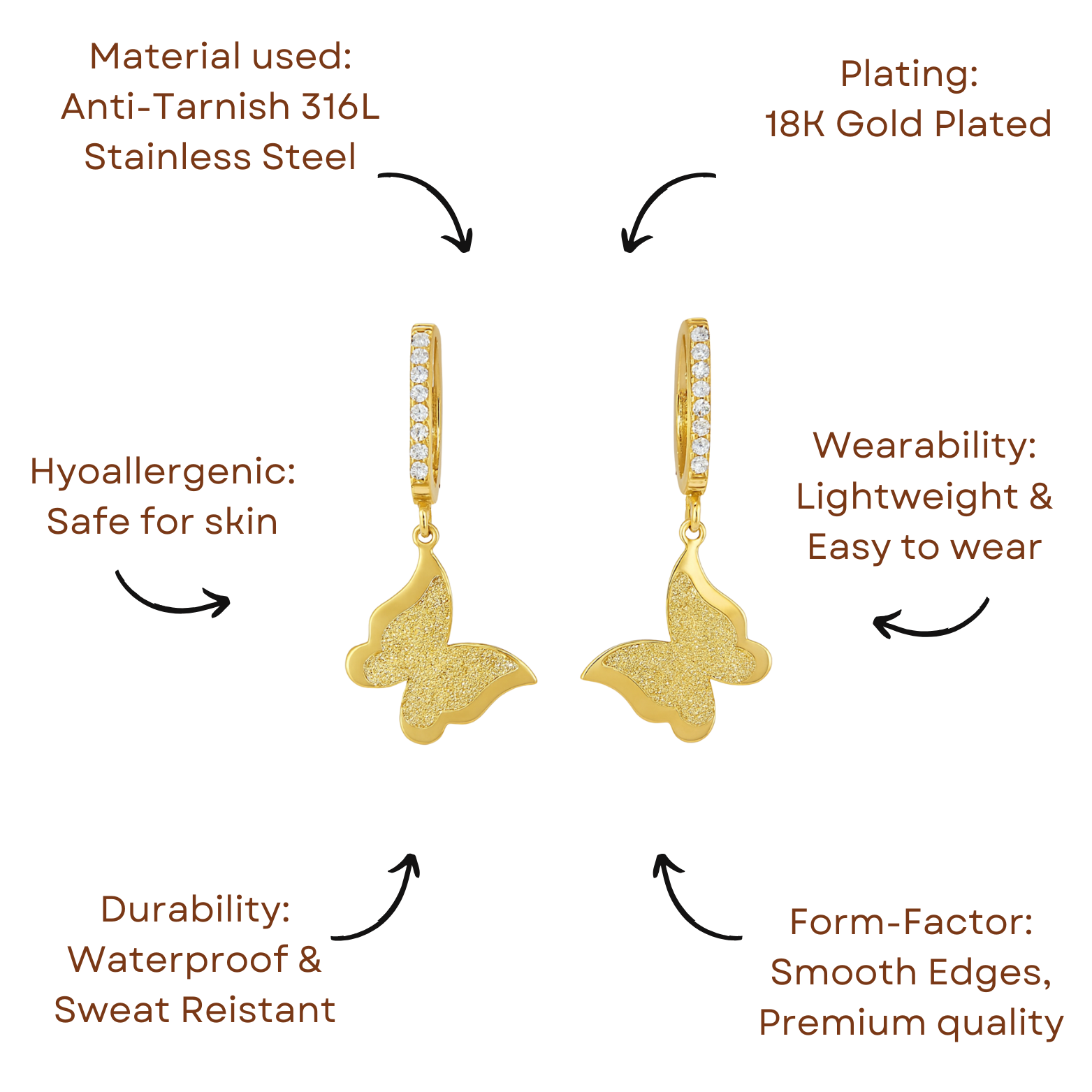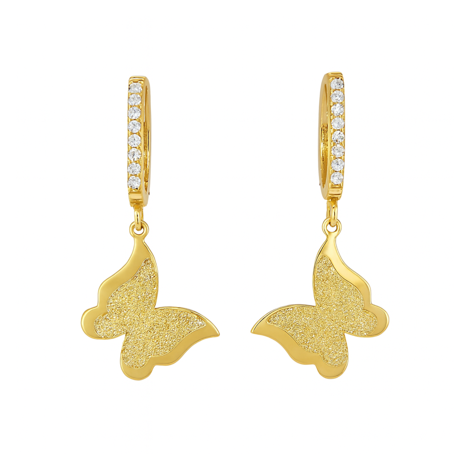 Inspired by the golden shimmer of dawn, this design features delicate butterflies that glisten with every movement. The soft sparkle and graceful form evoke a timeless sense of renewal and elegance.