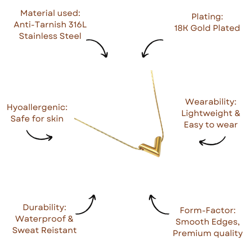A sleek, minimalist “V” pendant in polished gold — perfect for layering or wearing solo. Bold yet elegant, it adds a modern edge to any outfit.